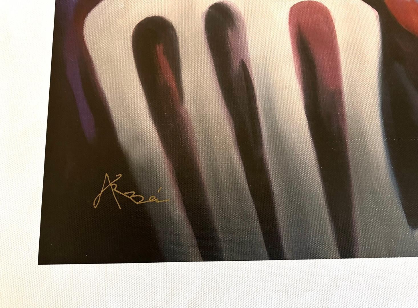 A beautifully drawn and colored image of three women in a café by renowned artist ARBE. Measuring 23.75x29.75 this is a rare & unique image outside the artist's typical style.