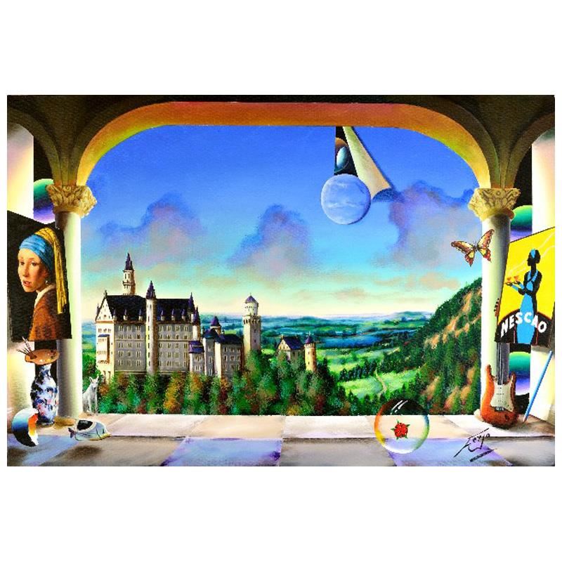 "Girls with Pearl Earring" is an original painting, oil on stretched canvas, by Ferjo. Hand signed by the artist, this piece comes with a letter of authenticity. Measures approx. 24" x 36" (image).