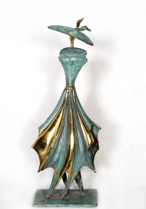 Giuliano Ottaviani, Woman with Hat, 18, Bronze Sculpture