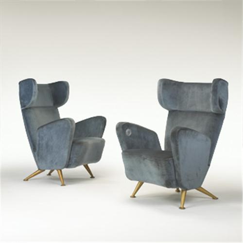 This pair of chairs was created for the first class lounge in the ETR 300 electric trains for the Italian State Railway.