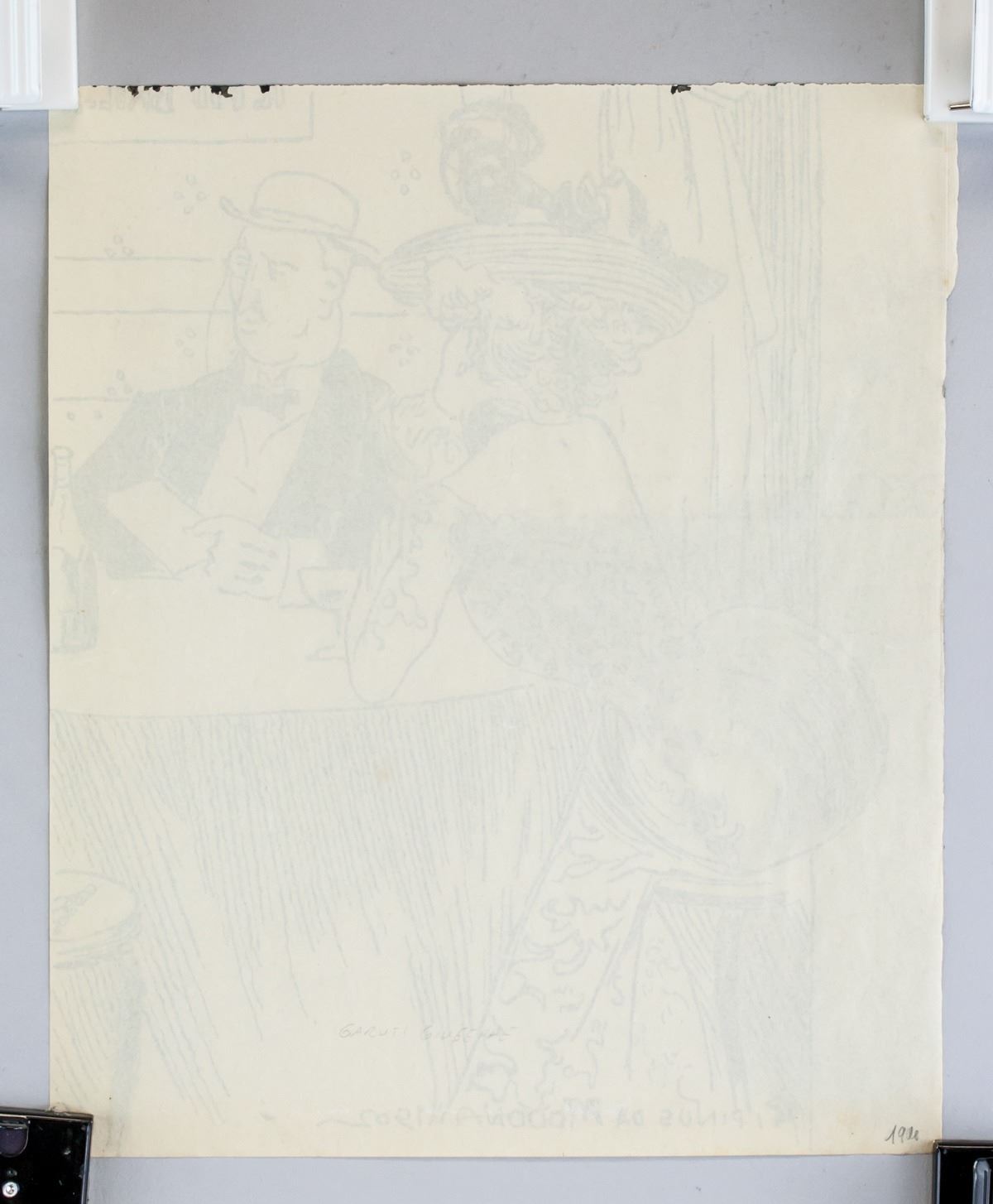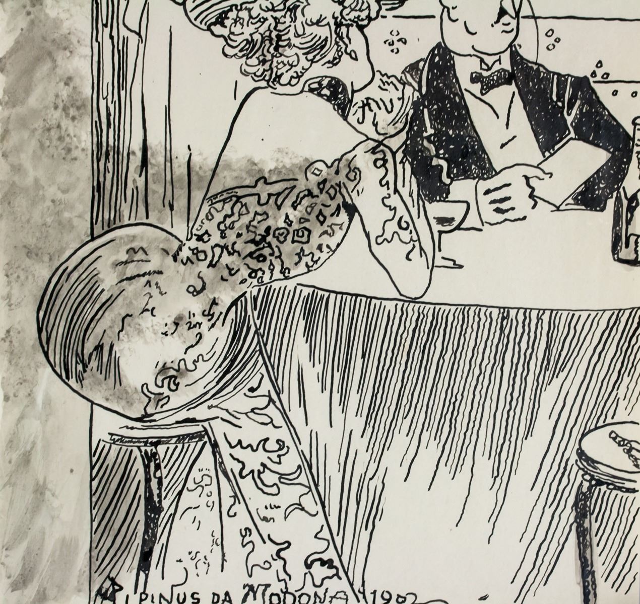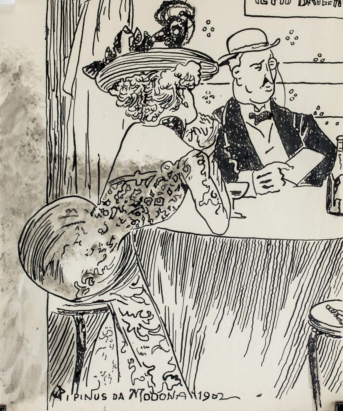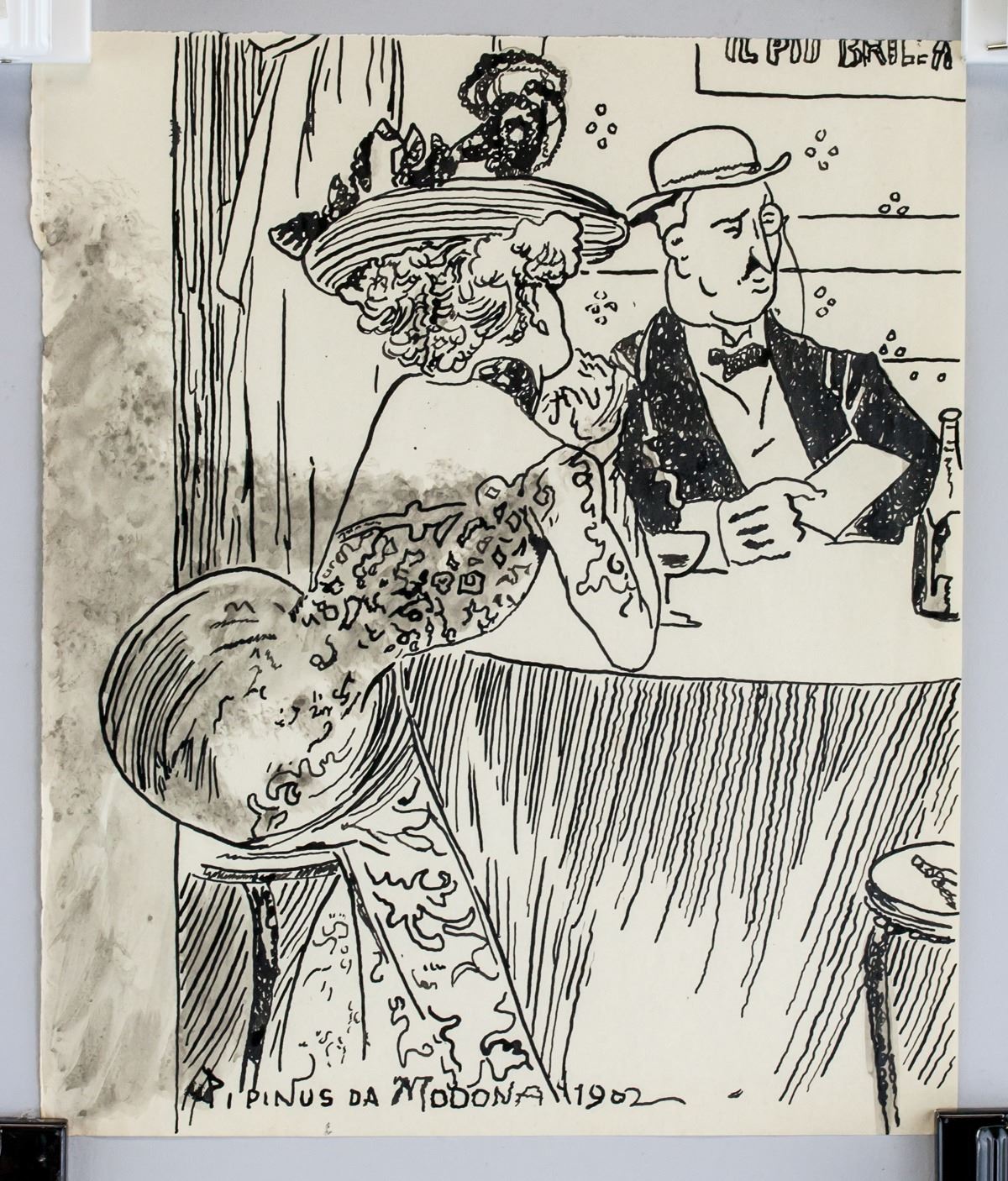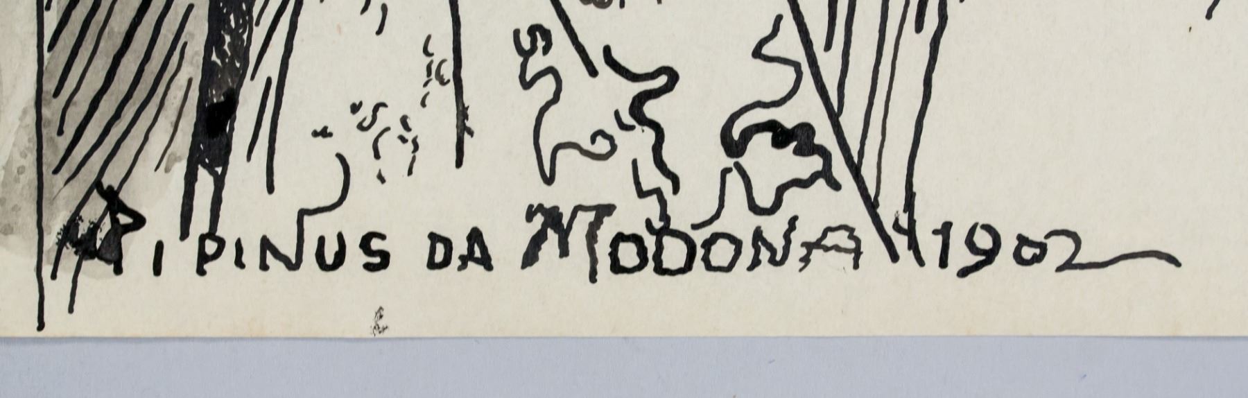 Ink on paper. Featuring a portrait. Signed Pipinus Da Modona and inscribed 1902 on the lower edge. Inscribed GARUTI GIUSEPPE and 1910 on verso. 26 x 21.5 cm (10.x 8.5 inches). PROVENANCE: Southern Ontario estate