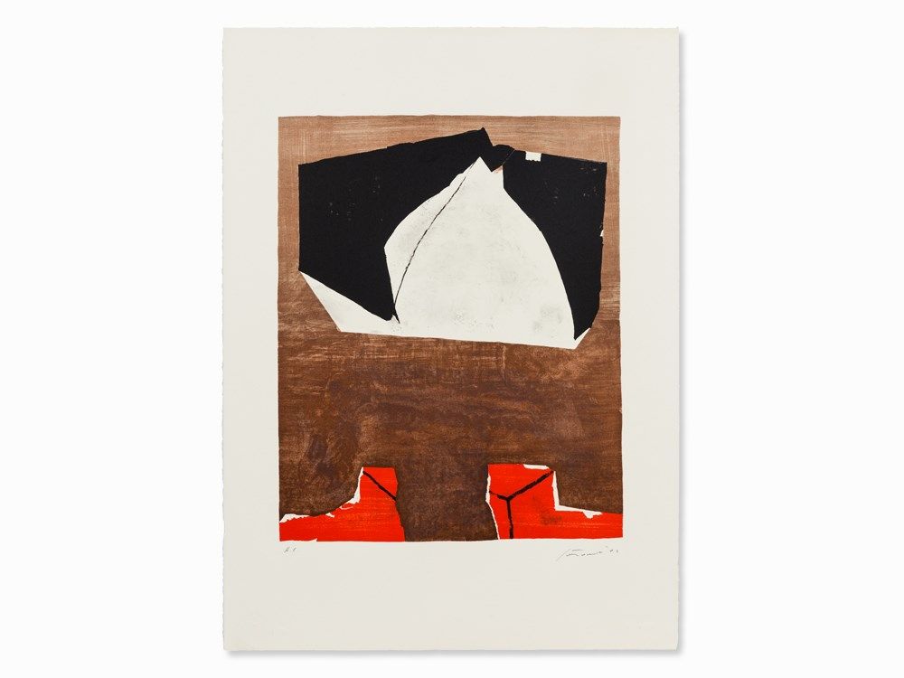 The lithograph in colors is signed and dated lower right in pencil ‘Santomaso '82’ inscribed lower left in pencil ‘H.C.’. The sheet is in very good condition. The image measures 50 x 40 cm, the sheet 73.3 x 53 cm.