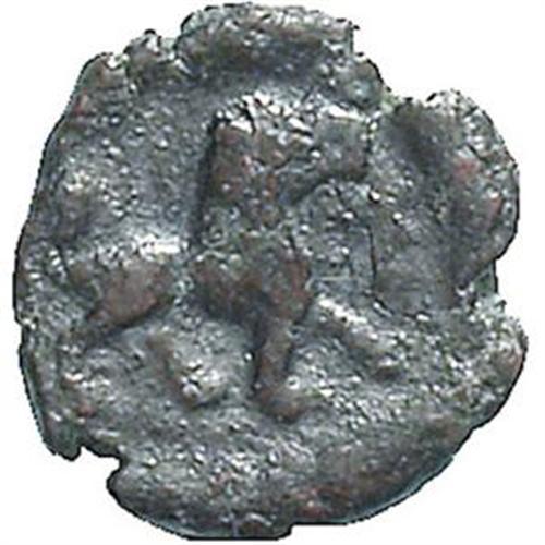 Monete Bizantine. Giustiniano I (527-565). Nummus, Roma. D/ Busto frontale, elmato e corazzato. R/ Leone che cammina a destra. D.O. 332. gr. 0.73 R. AE. BB.