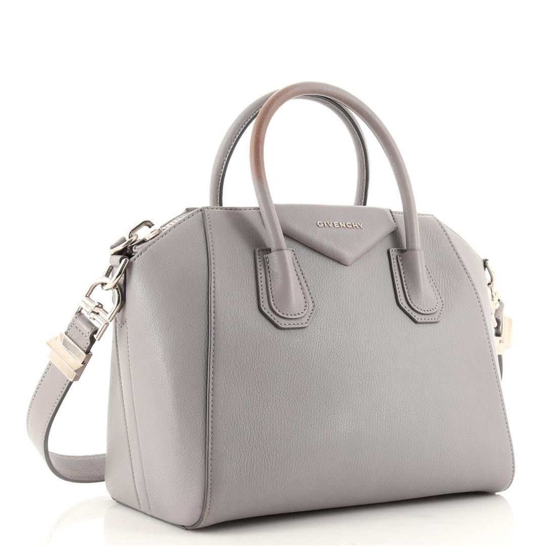 One Givenchy Antigona Bag Leather Small. Item is sold AS-IS. All available information is listed in the description and shown in the photo. Givenchy Antigona Bag Leather Small. Scuffs on exterior, heavy darkening and wear on base trims and handles, peeling on rear handle base trims, minor cracking on handle base wax edges. Glue stain on zipper tape, wear in interior, scratches on hardware. 78848