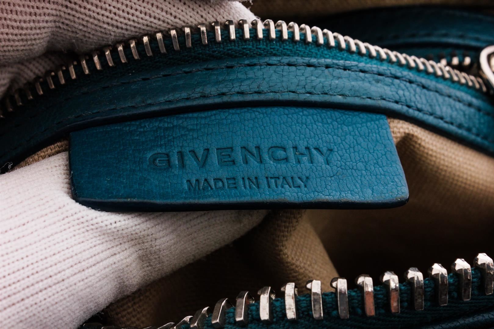Givenchy Blue Grained Leather Mini Antigona Tote Bag. All available information is listed in the description and shown in the photos. Givenchy blue grained leather Mini Antigona bag with silver-tone hardware, beige canvas lining, two interior slip pockets, interior zip pocket, optional leather crossbody shoulder strap, and zip top closure.