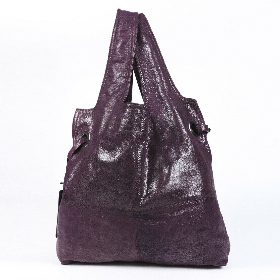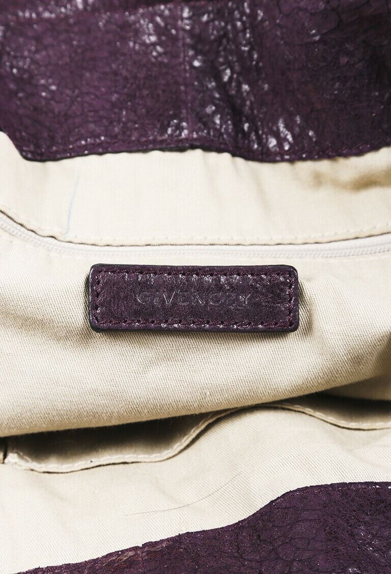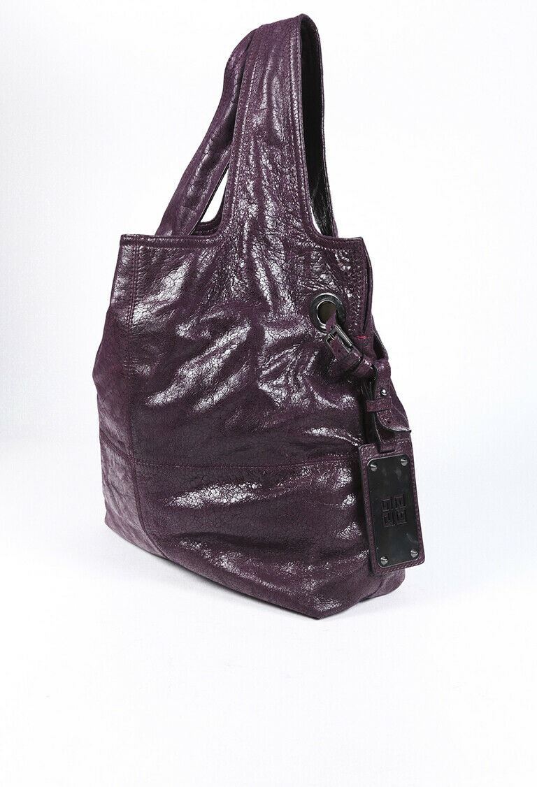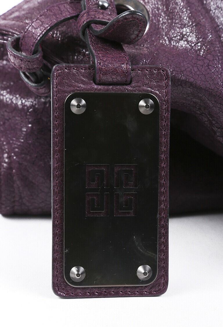 Description: Circa 2008. Givenchy George V leather shoulder bag features silver tone hardware, dual straps, side grommet accents with an attached luggage tag charm, an open top, and a lined interior with pockets.