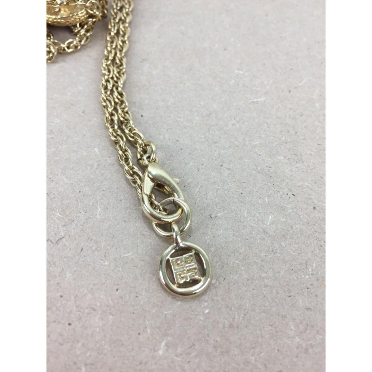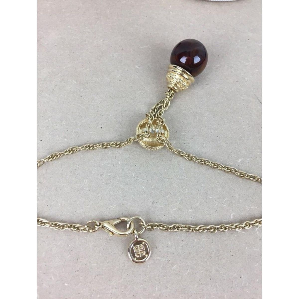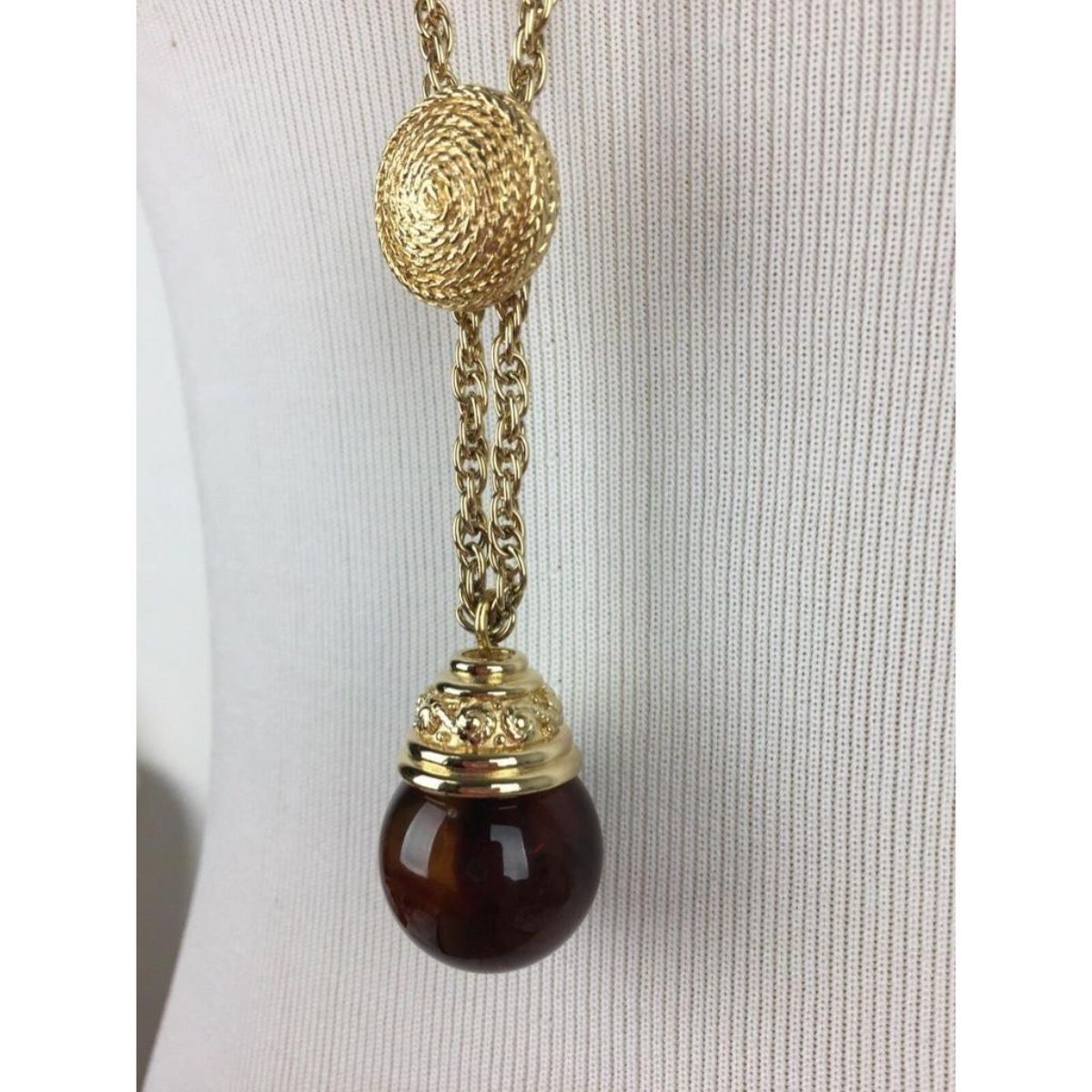 Givenchy Paris, designer extended length statement necklace. Gold-tone with brown lucite pendant.