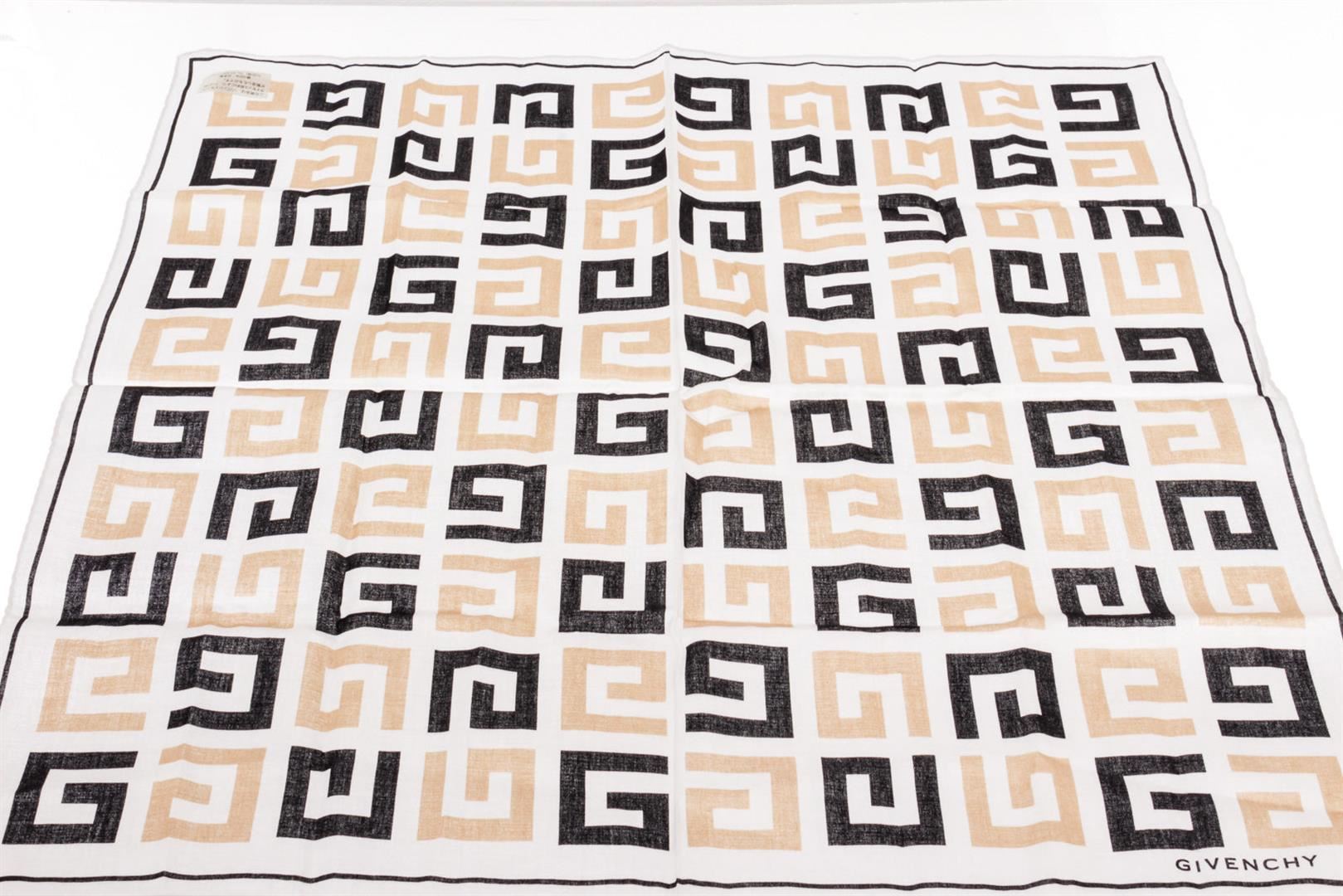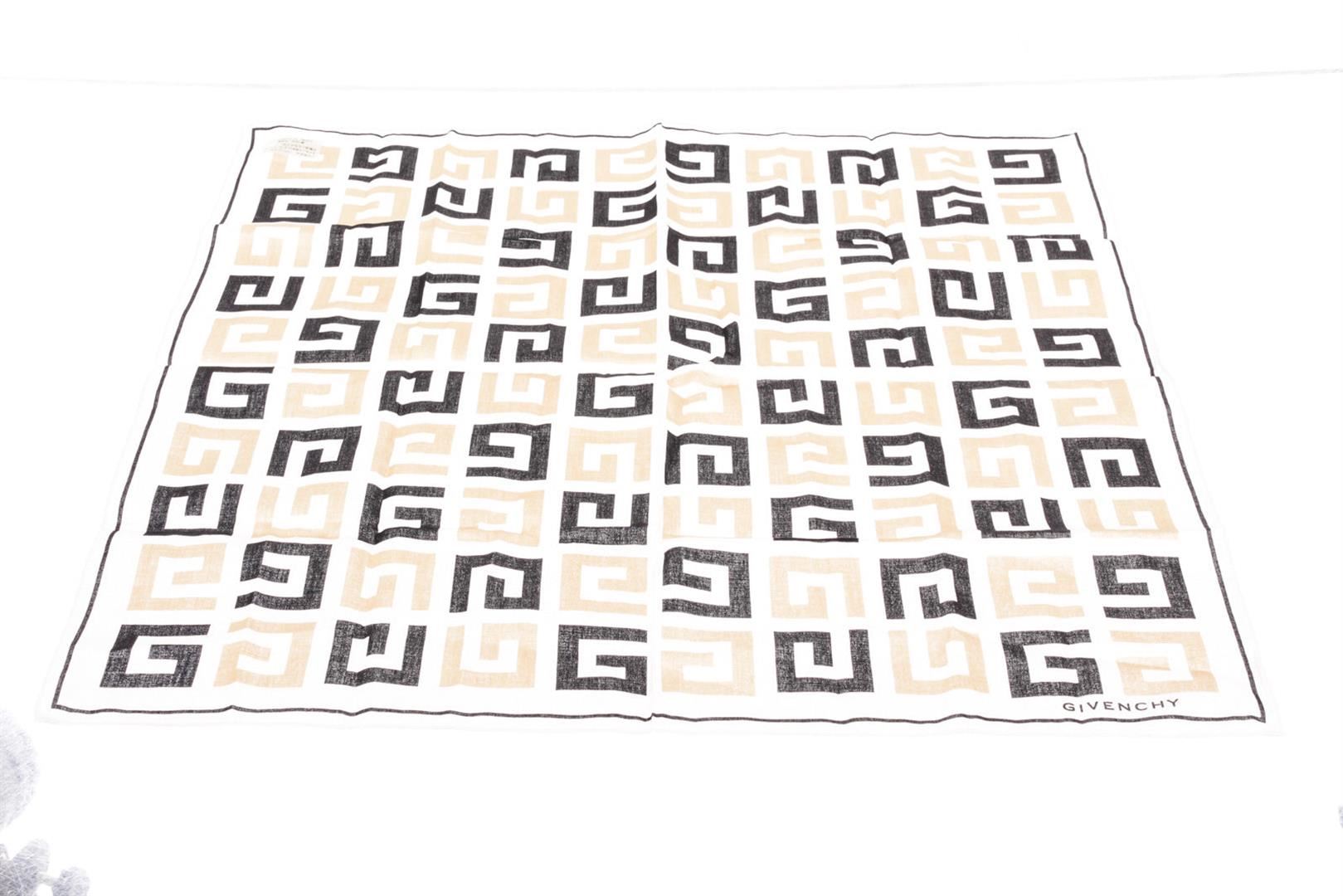 Givenchy White Black Tan Handkerchief with gold-tone hardware.