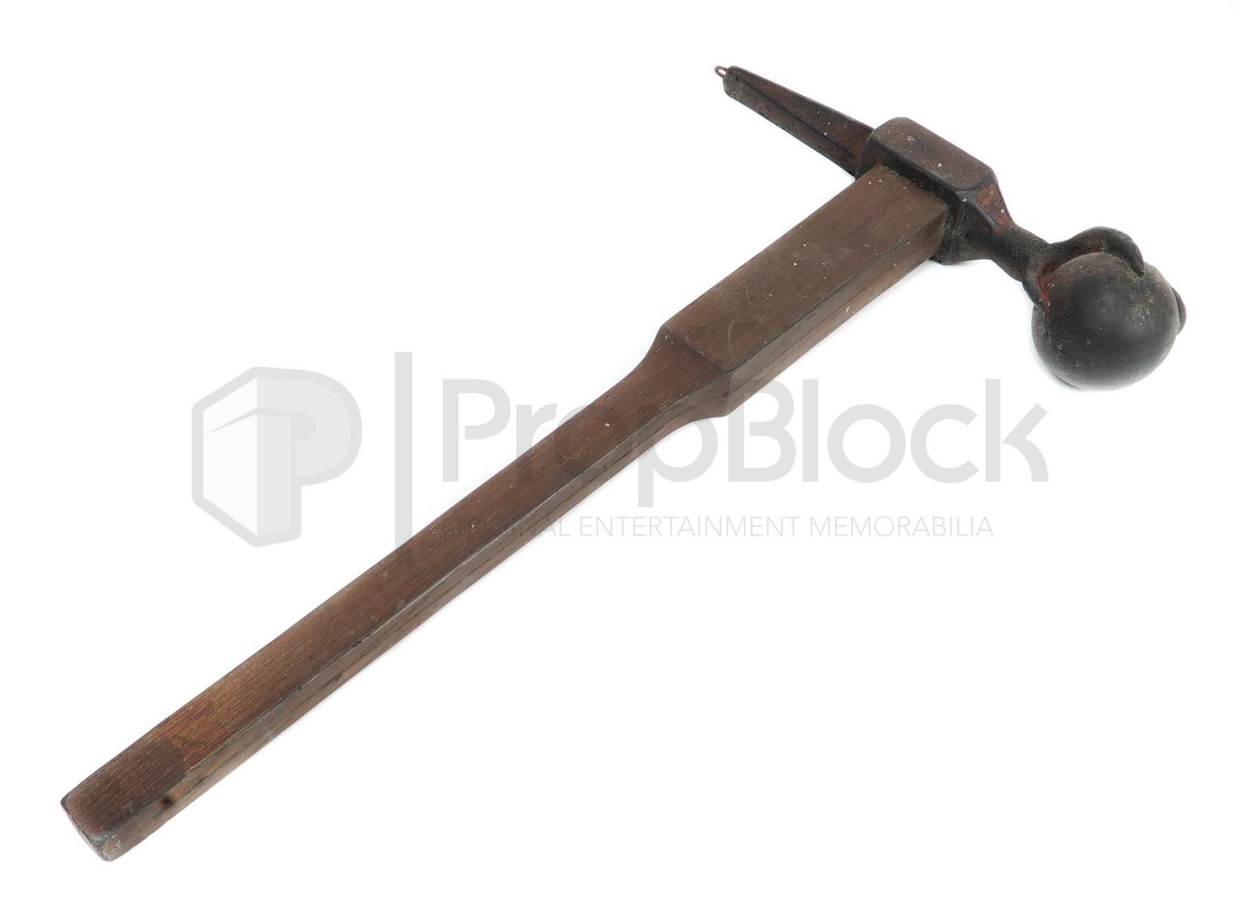 Axe style weapon used in the production of the 200 Ridley Scott film Gladiator. A former Roman General sets out to exact vengeance against the corrupt emperor who murdered his family and sent him into slavery. This style weapon as used in the arena fighting scenes. This piece is made of a very hard urethane rubber and features a faux wooden handle with a faux hammer top featuring the detail of a talon claw holding a ball. This item remains in excellent, production used condition.