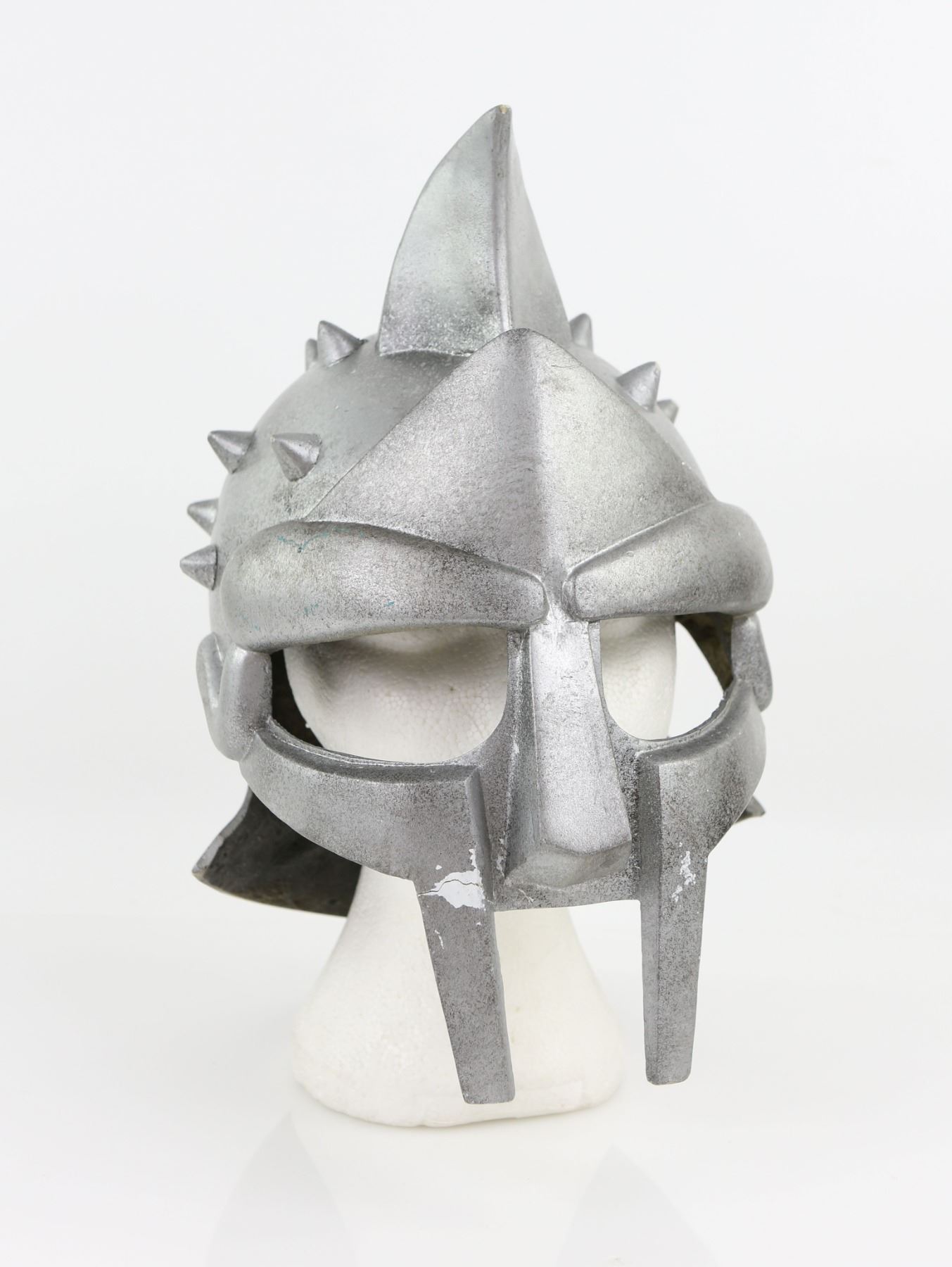 Gladiator (2000) - Replica Gladiator helmet similar to the helmets worn in the movie. The helmet, painted in metallic grey, is made from moulded resin and measures 33cm tall.