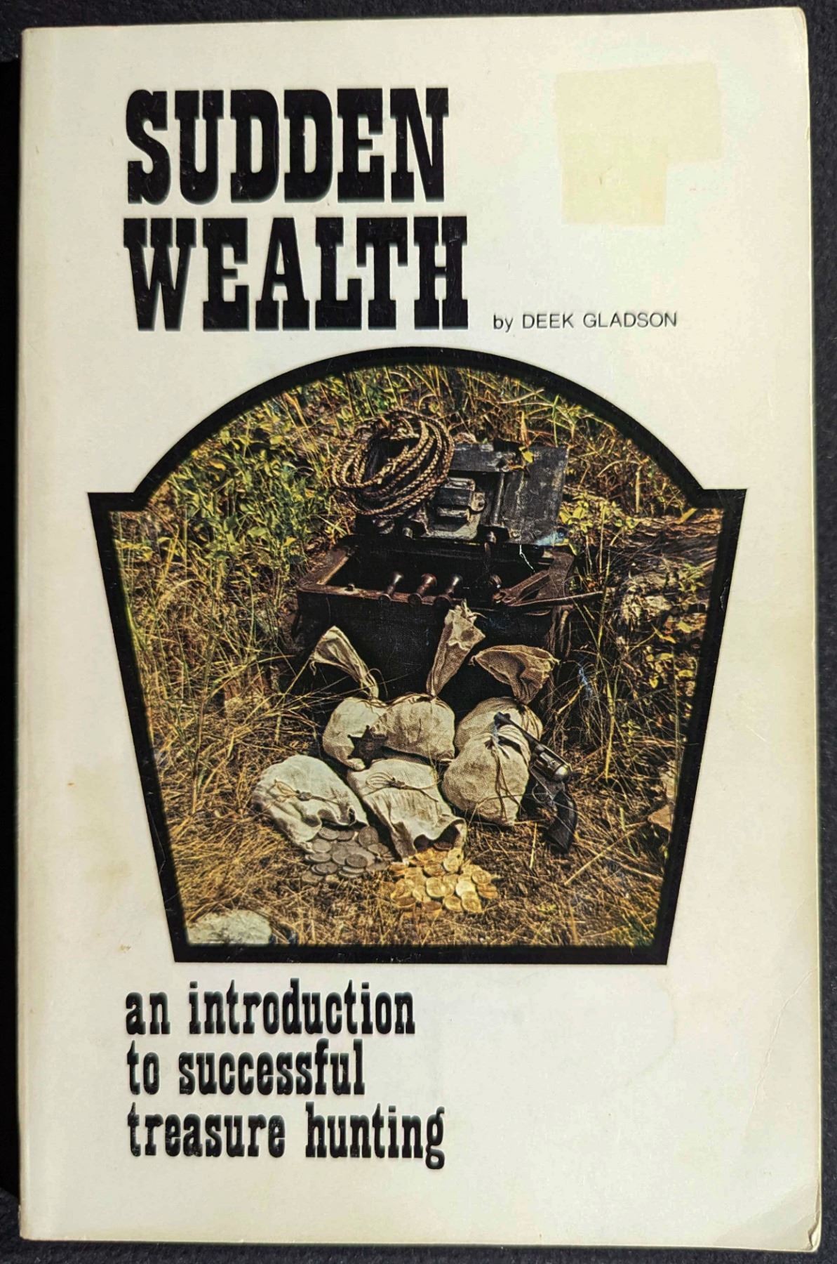 Gladson, Deek. SUDDEN WEALTH. AN INTRODUCTION TO SUCCESSFUL TREASURE HUNTING. Ram Publishing Company. 1972. 12mo. x, 106 pages. Dallas. RAM revised reprint of the first edition. original white printed card covers. illustrated. near Fine. KvonM wanted to 'fill the void' between his own Treasure Hunter's Manuals and Nesmith and Potter's 'Treasure Hunters'. Ounce for ounce, the best book ever written about hunting for and finding treasure. 'Sudden Wealth' covers it all in a few short chapters: 'Big Dividends, No Overhead,' 'Treasure Is What It Is,' 'HUSH Your Mush' (alone worth the price of this book ? not just in treasure hunting, but in life!), 'Finder?s Keepers,' and much more. There are many layers to all of his books. The stories are, of course, quite interesting. This is a remarkably easy book to read. But these are not just amusing anecdotes from a man who spent as much time in the field as anyone ? and certainly more than most. Every tale has a purpose if the reader is smart enough to understand it. See the photo of Karl sitting on a slot machine counting silver cartwheels from 'A king?s ransom in silver and gold coins.' If that doesn?t make your heart race and your blood pound, this just isn?t the book for you! Accurate and concise. Long out of print. Very scarce.