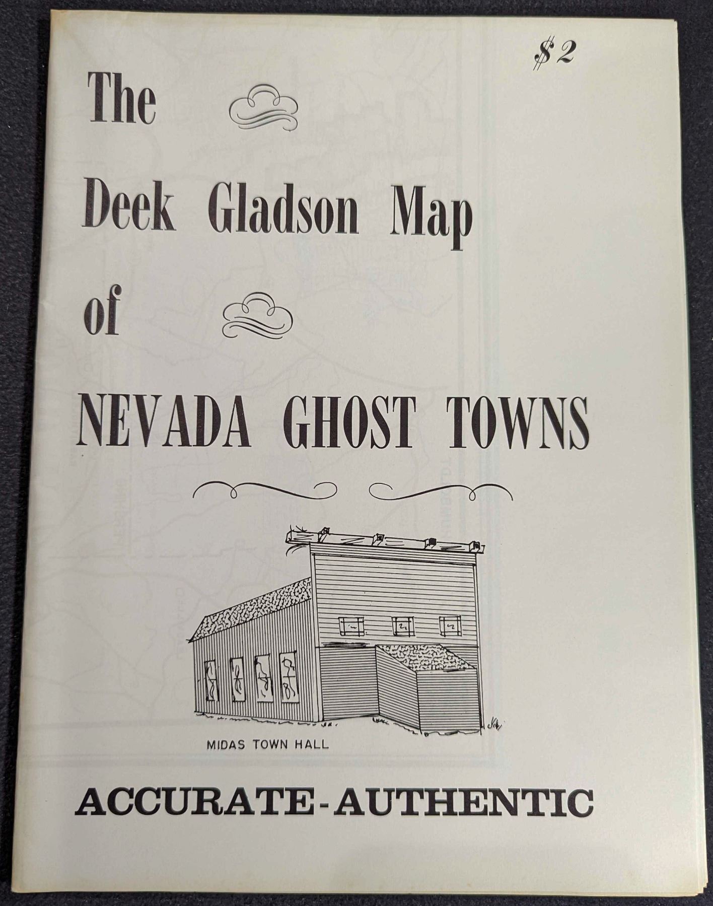 Gladson, Deek. THE DEEK GLADSON MAP OF NEVADA GHOST TOWNS. Karl von Mueller. 24x36. Grand Prairie. original printed paper. 4 colors on buff. double-sided. Fine. With descriptions of and directions to 115 ghost towns and mining camps. Includes "How to Locate a Ghost Town," "Ghost Towning Equipment," "Ghost Towning". KvonM's Treasure Hunter's Manual #6, Ghost Town Directory, lists his roster of abandoned towns in Appendix B. This is his map to those places in Nevada. These maps are scarce today, particularly in such fine condition. Lot weight: 0 lbs 4oz. Subject(s): Ghost Town Maps.