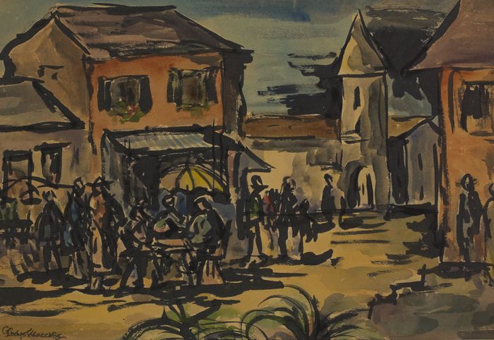 Gladys Maccabe HRUA ROI FRSA (b.1918) - CONTINENTAL CAFÉ SCENE