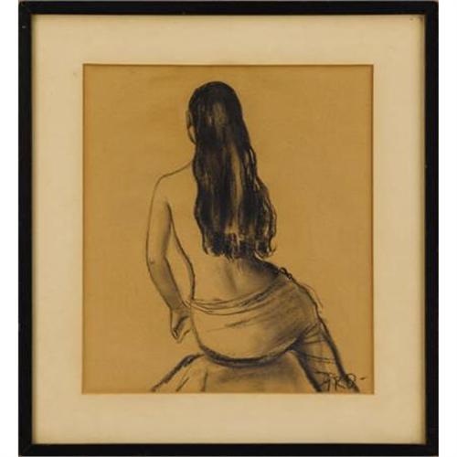 <B>GLADYS ROCKMORE DAVIS </B></I>(American 1901-1967)<B></B></I><BR><I>Seated Nude with Long Hair</B></I><BR>Charcoal on paper<BR>12 x 10-1/2 inches (30.5 x 26.7 cm)<BR>Initialed lower right<BR> <BR><BR><b>Shipping:</b> Requires 3rd Party Shipping (<a target="_blank" href="http://www.heritageauctions.com/common/shipping.php">view shipping information</a>)