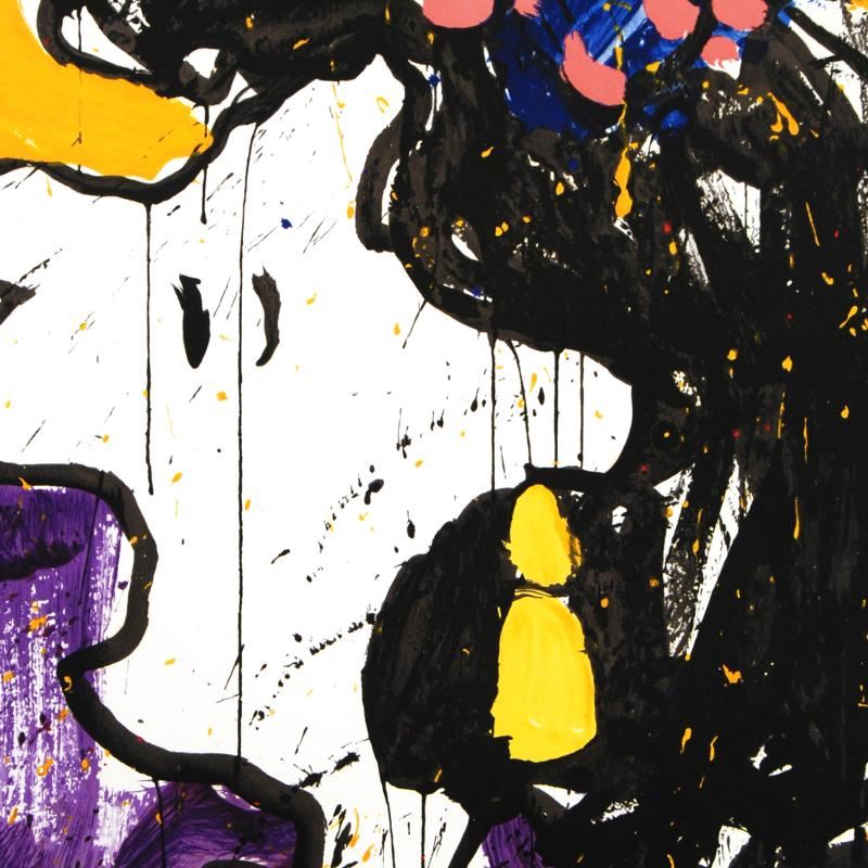Master Artist Tom Everhart is the protege of famed "Peanuts" creator, Charles M. Schulz (1922-2000). As the only artist in the world granted the rights to draw the "Peanuts" characters in his own work, Everhart creates vibrant, extremely collectible rainbow masterpieces featuring Snoopy, Woodstock and the gang. "Glam Slam" is a limited edition hand pulled original lithograph on museum quality deckle-edge paper, numbered and hand signed by Everhart! Includes certificate of authenticity! Measures approx. 22.5" x 30" (image only/no border). This artwork was created on one of two rare antique Marinoni Voirin lithograph presses that date back to the 1800's, and are reputed to come from the Paris print shop used by Henri Toulouse-Lautrec. There are only 7 of these magnificent beasts left in the world: the smaller one (with a print bed size of 25" x 35"), weighs 9 tons, and the larger one weighs in at 11 tons (print bed size 31" x 47"). The significance of this is that the lithographs produced by this method are of the finest quality, using techniques that are so labor and time intensive that very few master printers know how to operate and care for these presses today. Each lithograph is created with hand-mixed colors applied one at a time - a highly trained and synchronized team must hand feed each museum-quality sheet of paper through the press numerous times in order to set the colors and impressions, while the Chromist - a trained color specialist - adjusts each color by look and feel to match the original artwork, as if mixing a potion. The result is an image with maximum pigment saturation, formed through rich layers of color that imbue the artwork with a permanency of brilliance - proven over centuries to last. In contrast, today's printers use a method more akin to a dot matrix style application, with the colors all premixed and sprayed onto a sheet in a uniform layer, resulting in a much less saturated image that is susceptible to fading and imperfect color reproduction. This is one of the final Tom Everhart editions to be printed using this very special technique.
