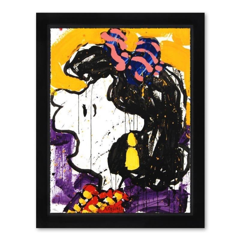 "Glam Slam" is a limited edition hand pulled original lithograph on museum quality deckle-edge paper by Tom Everhart. The piece is numbered, and hand signed by the artist. This is one of the final Everhart editions to be created on a rare, antique Marinoni Voirin lithograph press that dates back to the 1800's. The piece comes framed and includes a letter of authenticity. Measures approximately 26.5" x 34" (framed), 22.5" x 30" (image).