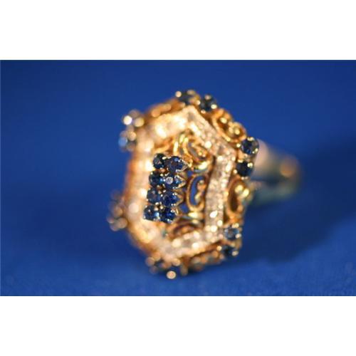 <tr><td>Title:Glamorous 18K Gold Sapphire and Diamond Ring-</td></tr>