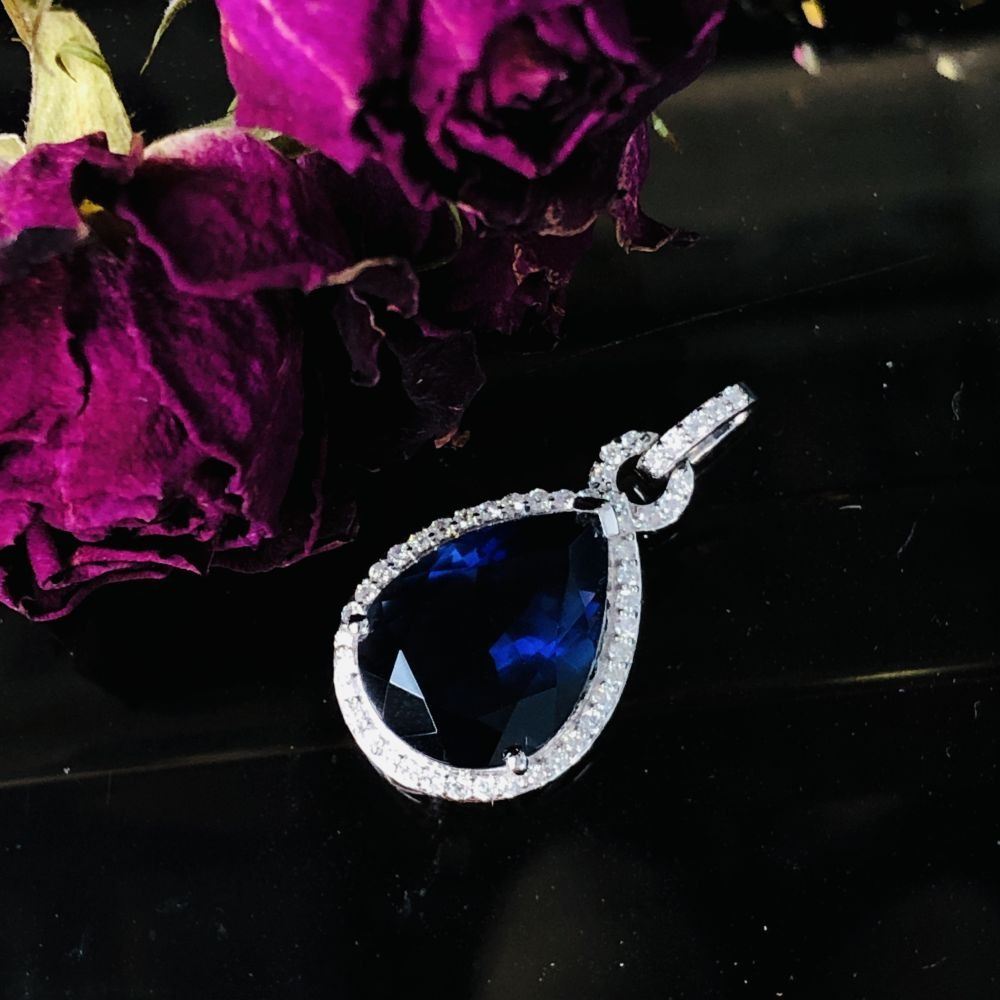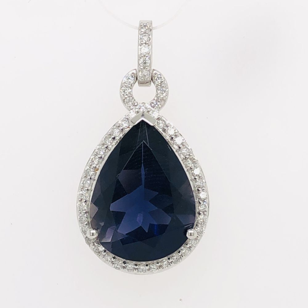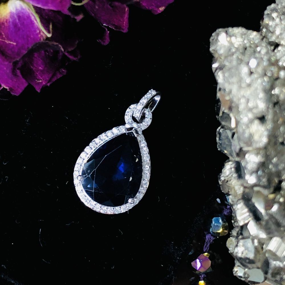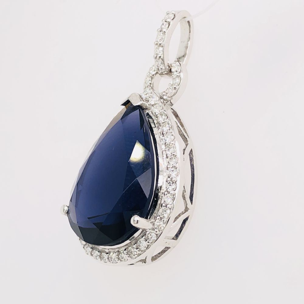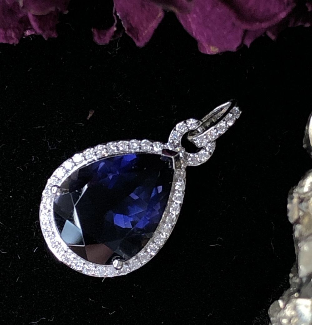 Glamorous Iolite and Diamond Halo Pendant