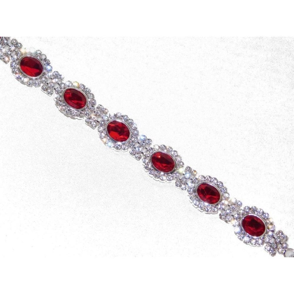 Upscale Designer Jewelry (Costume) Metal: Alloy Main Color: Silver Main Stone: Rhinestone Material: Glass Color: Red - 10082-040618-EB-07121