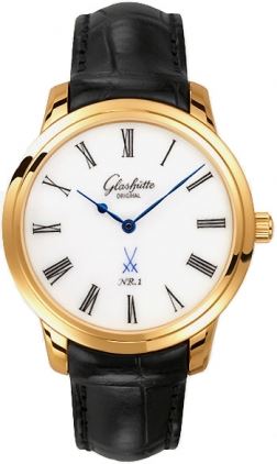 Model: 100-10-01-01-04 - CASE = [Material:18kt Rose Gold], [Case Diameter:40], [Case Thickness:9.8mm], [Case Back:See-thru Sapphire crystal], [Water Resistant:50 Meters - 165 Feet], [Crystal:Scratch Resistant Sapphire], DIAL = [Color:White], MOVEMENT = [Type:Automatic Self Winding], BAND = [Clasp:Tang Buckle], [Type:Alligator/Crocodile Leather Black], (Usually ships in 2 to 4 weeks.)