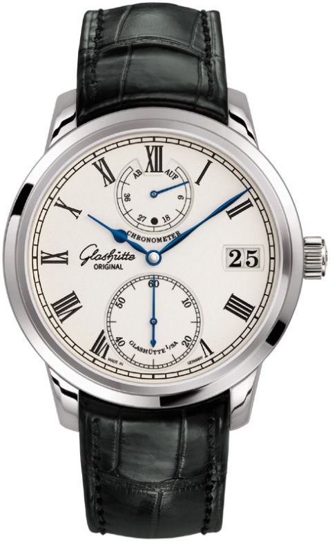 Model: 58-01-01-04-04 - Case,; MATERIAL18 KT WHITE GOLD = [Case Diameter42], [Case Thickness12.3mm], [BezelFixed], [Case BackSkeleton], [Water Resistant50 Meters - 150 Feet], [CrystalScratch Resistant Sapphire Crystal], Dial,; COLORSILVER = Movement,; TYPEMANUAL WINDING = [CrownPush in], Band,; CLASPDEPLOYMENT = [TypeBlack Alligator Leather], (Usually ships in 1 to 2 weeks.)