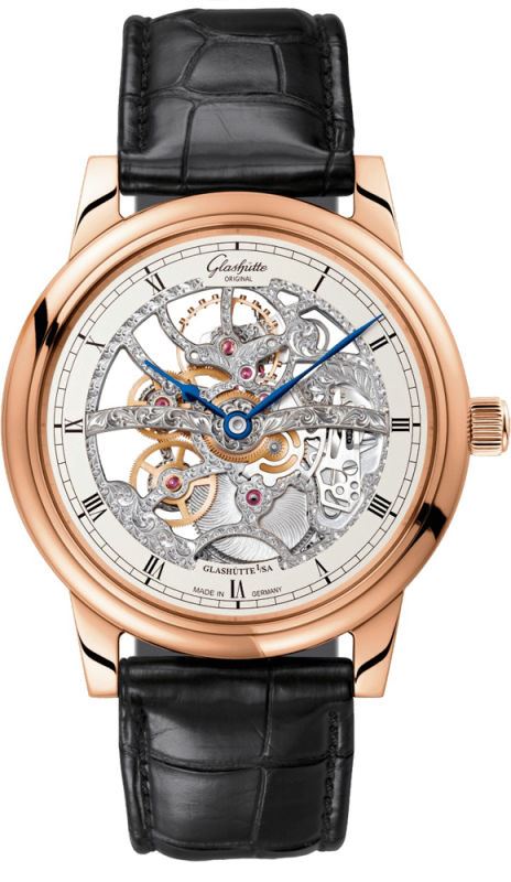 Model: 49-18-01-05-30 - CASE = [Material:18 Kt Rose Gold], [Case Diameter:42], [Case Thickness:9.5mm], [Bezel:Fixed], [Case Back:Skeleton], [Water Resistant:50 Meters - 150 Feet], [Crystal:Scratch Resistant Sapphire Crystal], DIAL = [Color:Skeleton], MOVEMENT = [Type:Manual Winding], [Crown:Push in], BAND = [Clasp:Deployment], [Type:Black Alligator Leather], (Usually ships in 1 to 2 weeks.)