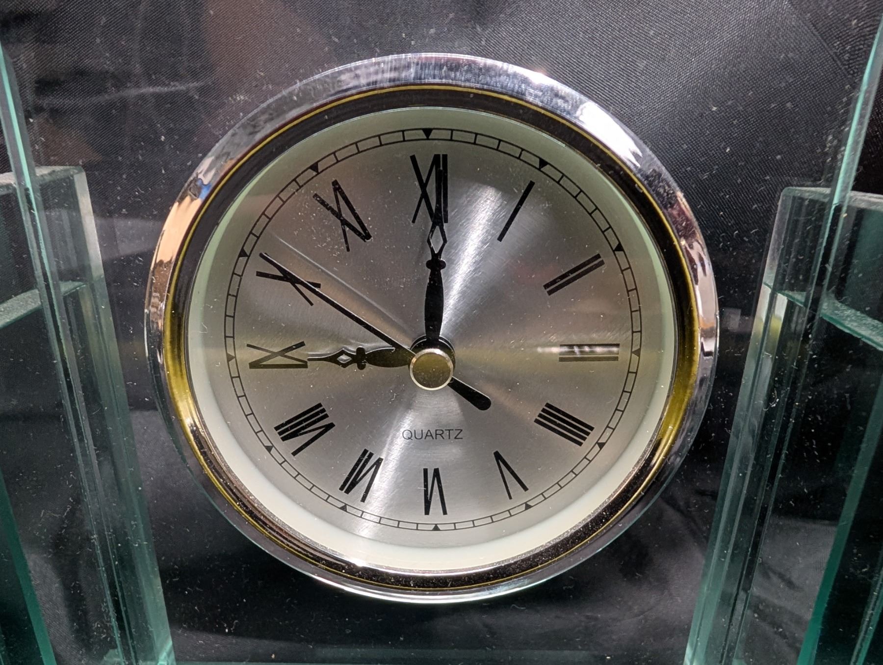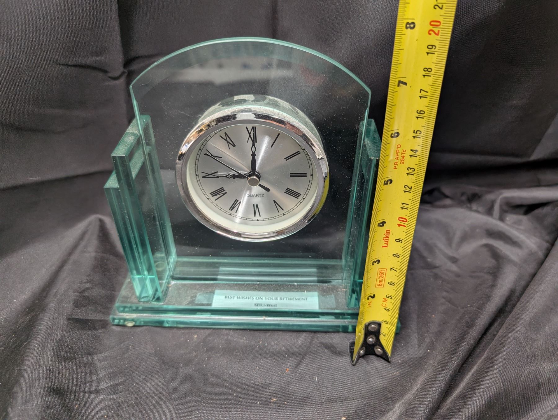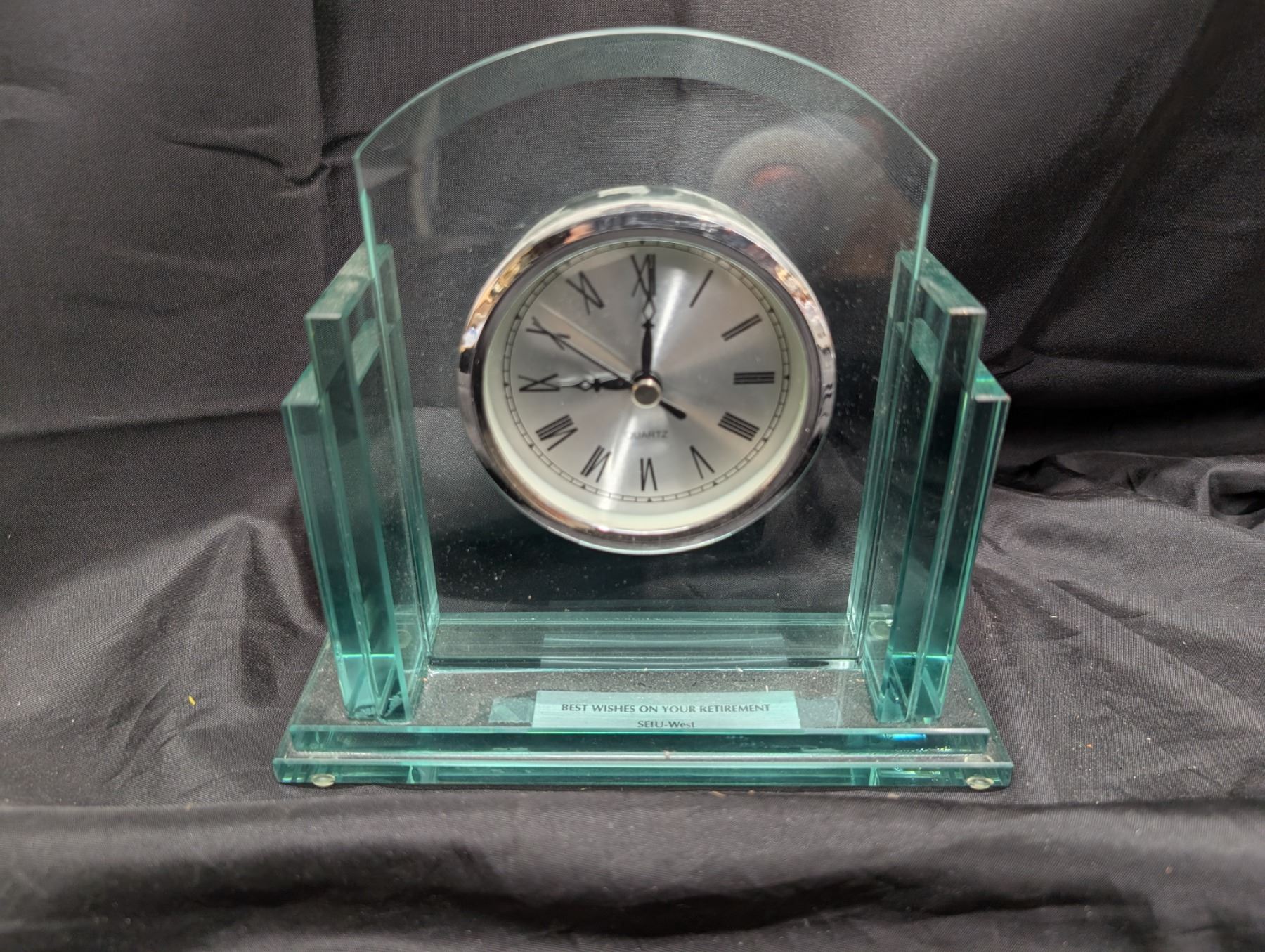 Glass Base W/ Battery Operated Quartz Clock (SEIU-WEST Retirement Present)