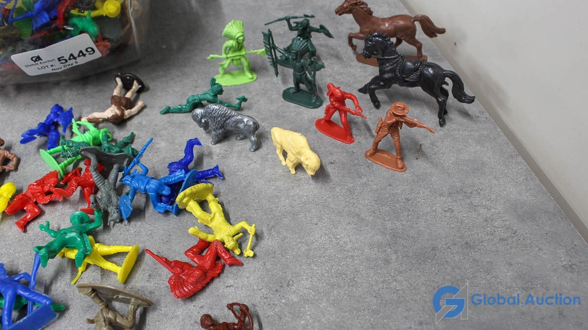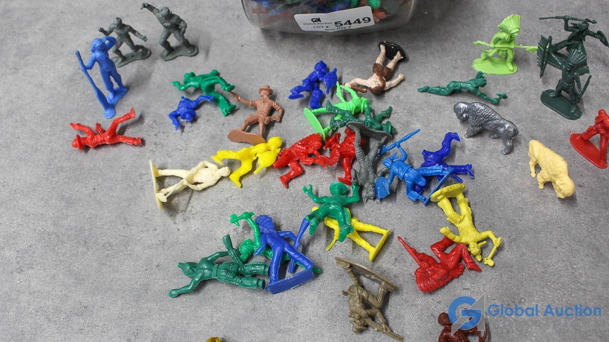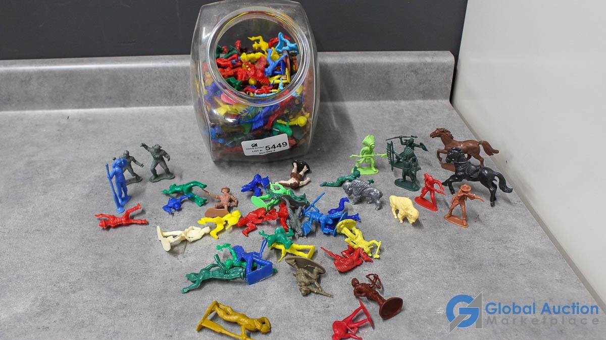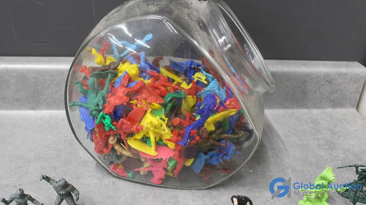 Glass Canister of Small Armymen, Cowboys, etc
