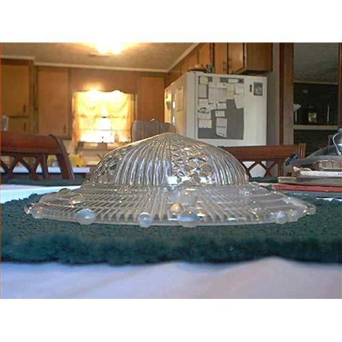 <table width="100%" border="0" cellspacing="0" cellpadding="4"><tr><td><em> </em></td></tr><tr> <td width="100%"> Vintage glass ceiling light fixture covers in clear glass with pretty bubble designs in the glass. There are holes for 3 chains. There is a flower design on the dome of the light. The light fixture cover measures 10.5 inches wide. Fine condition with no chips or cracks. There are a total of 2 light covers. </td></tr><tr> <td> </td></tr><tr> <td>Reference #: WR109</td></tr><tr><td>Condition:Very Fine</td></tr><tr><td>Year:Ca:1920-1950</td></tr><tr><td>Title:Glass Ceiling Light Cover Fixtures 2 Covers</td></tr><tr><td>Location:Eclectic USA</td></tr></table>