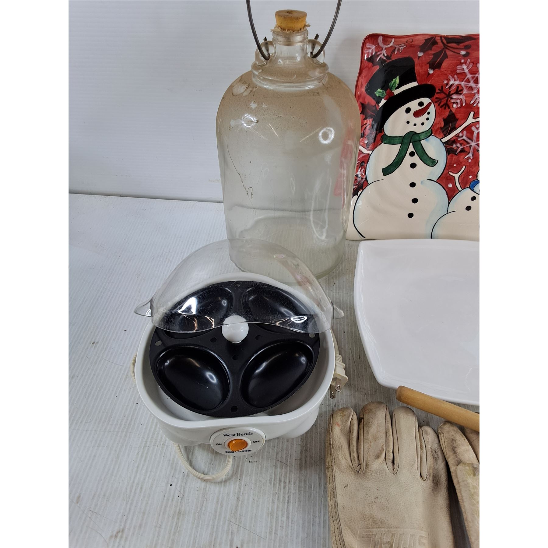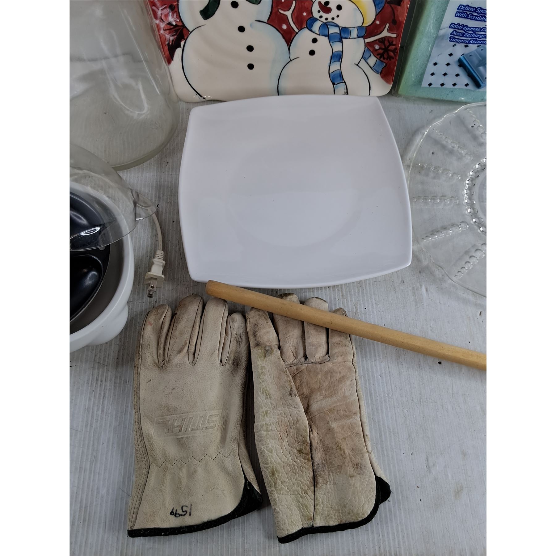 Glass & Ceramic Plates, Deluxe Sponge Mop, West Bend Egg Cooker - As Is, Stihl Work Gloves, Misc
