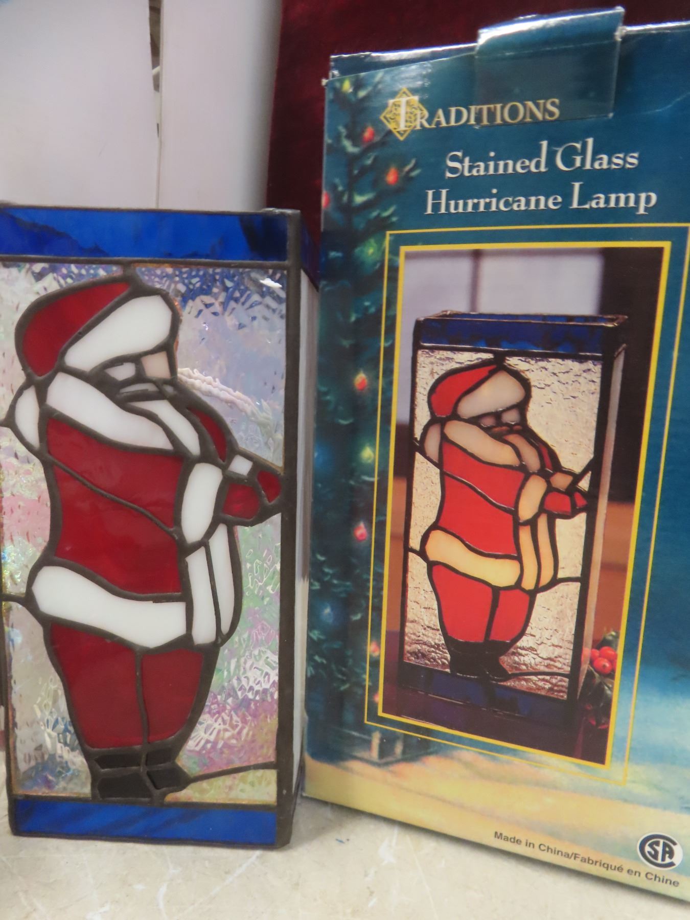 Glass Christmas Ornaments and Stained-Glass Santa Light