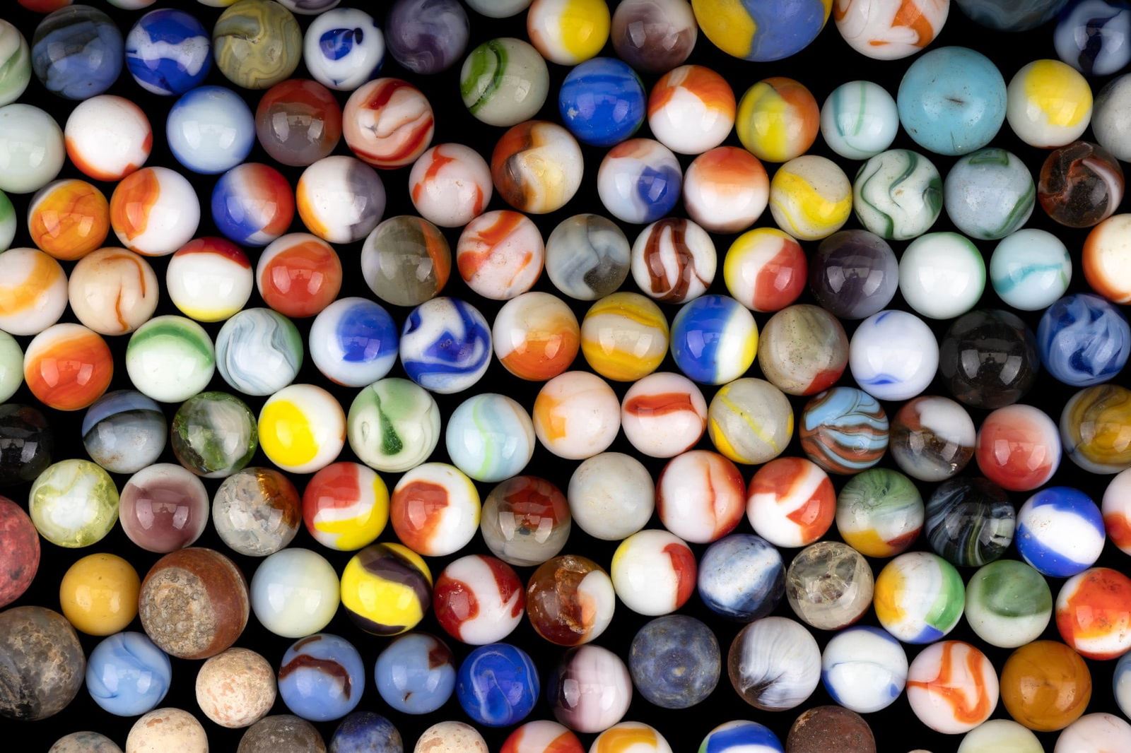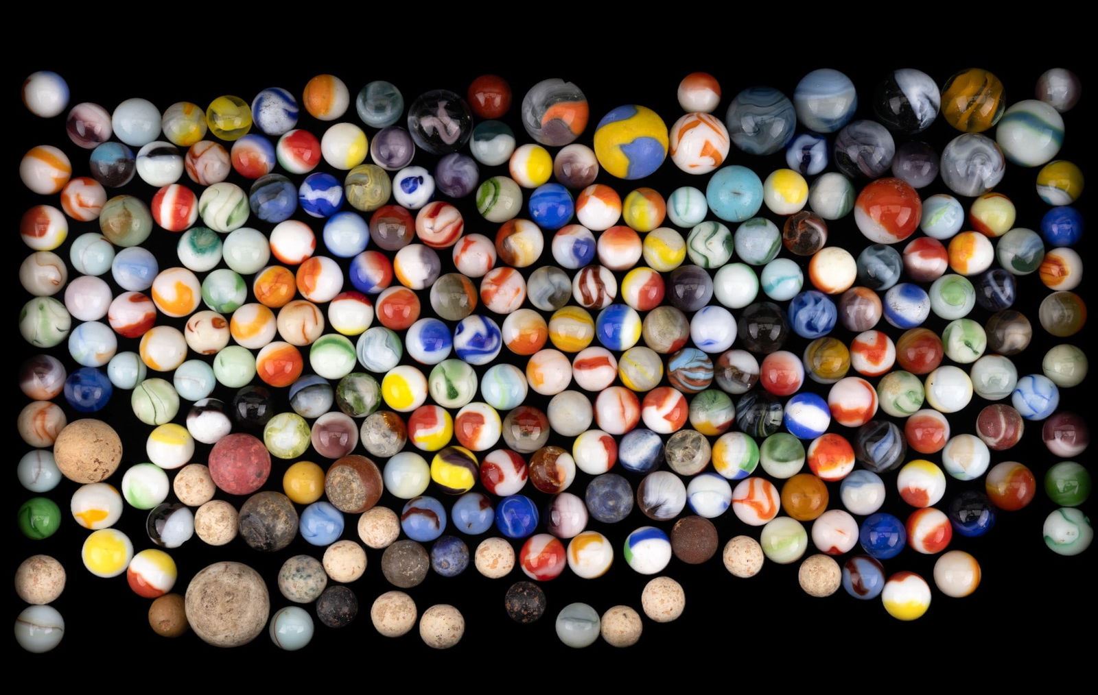 Over 200 vintage clay and glass marbles including many glass with some clay and agate including 18 assorted shooters. Various ages and conditions.