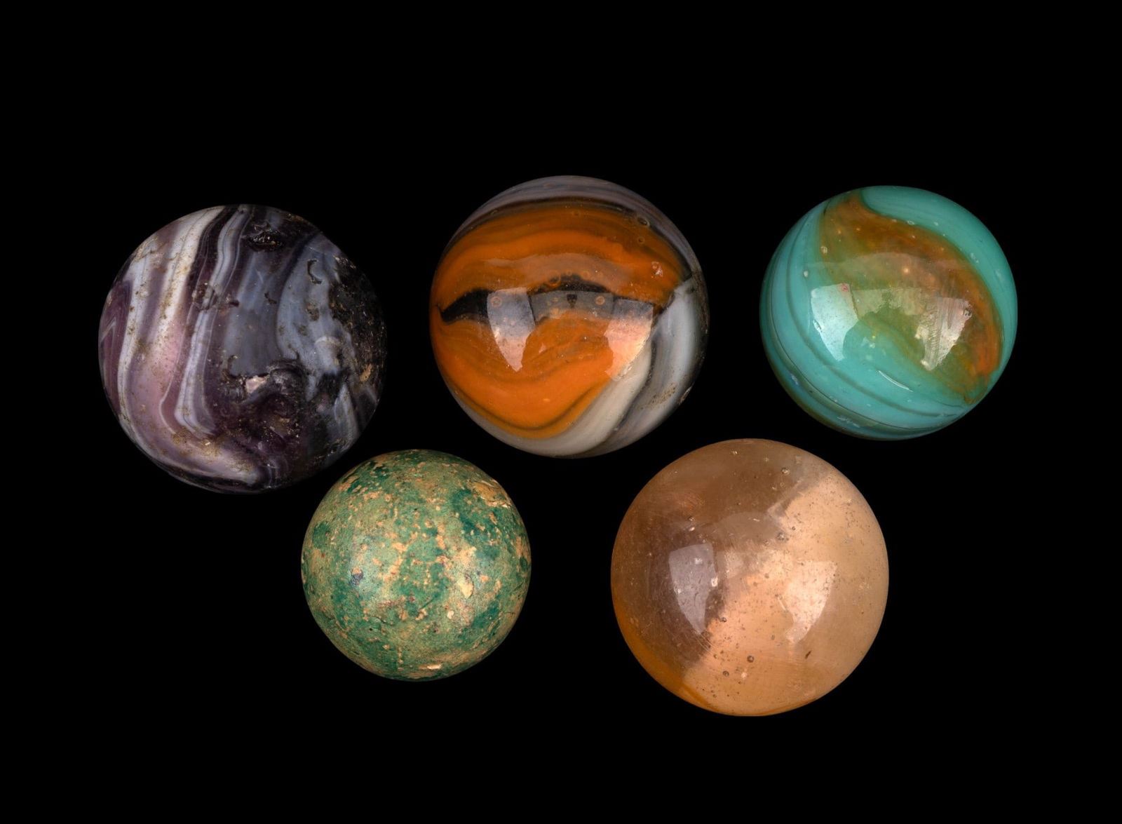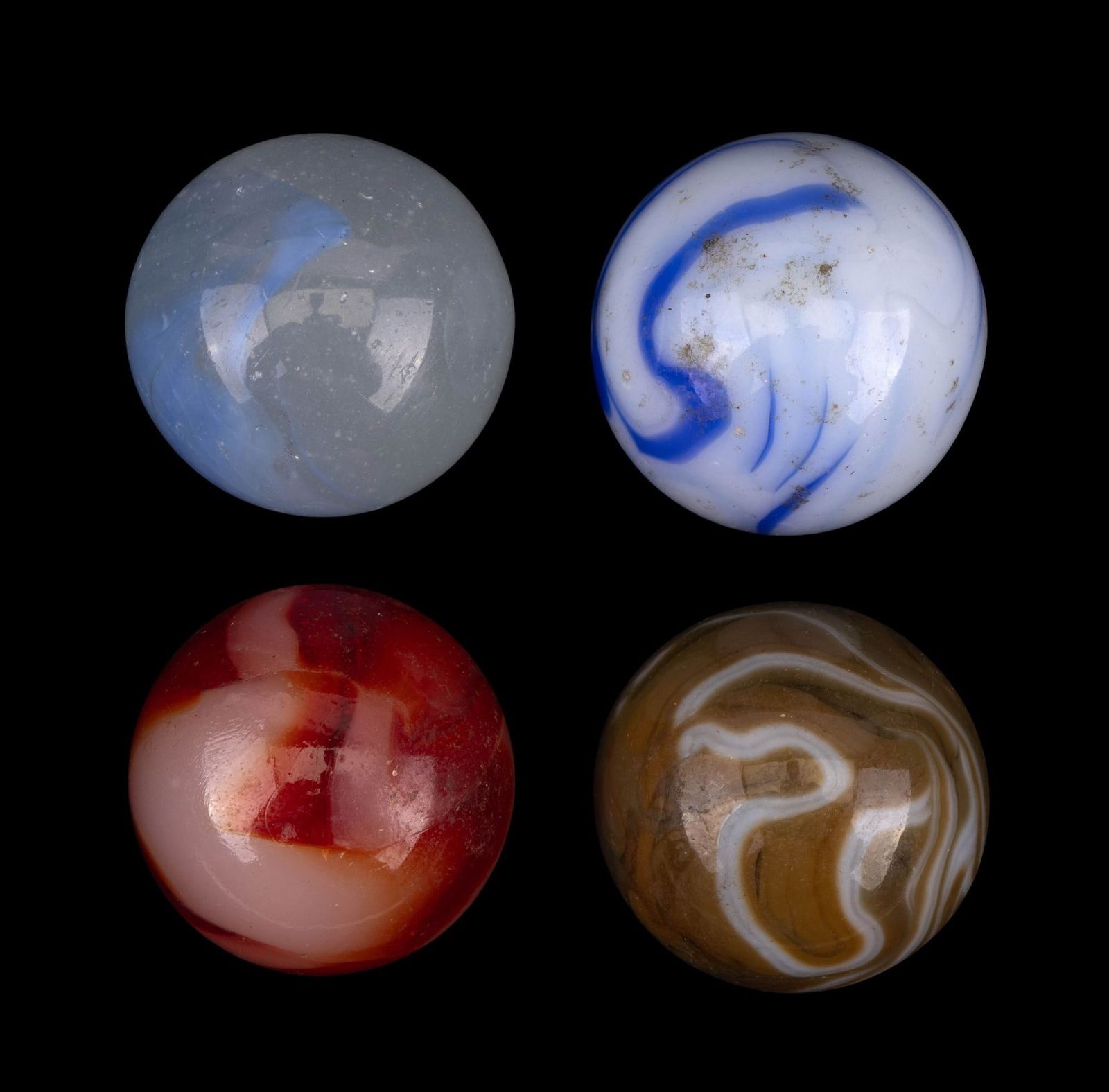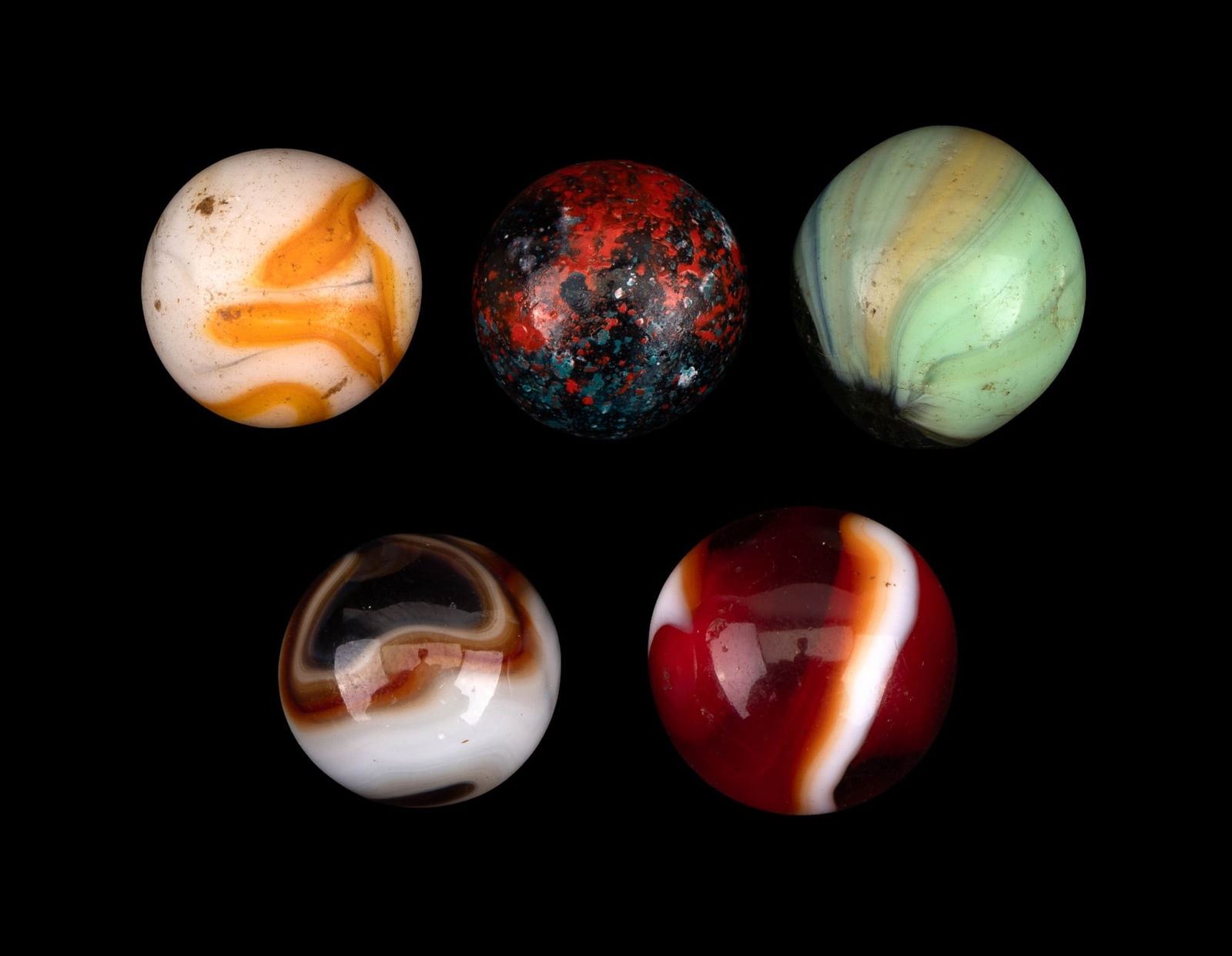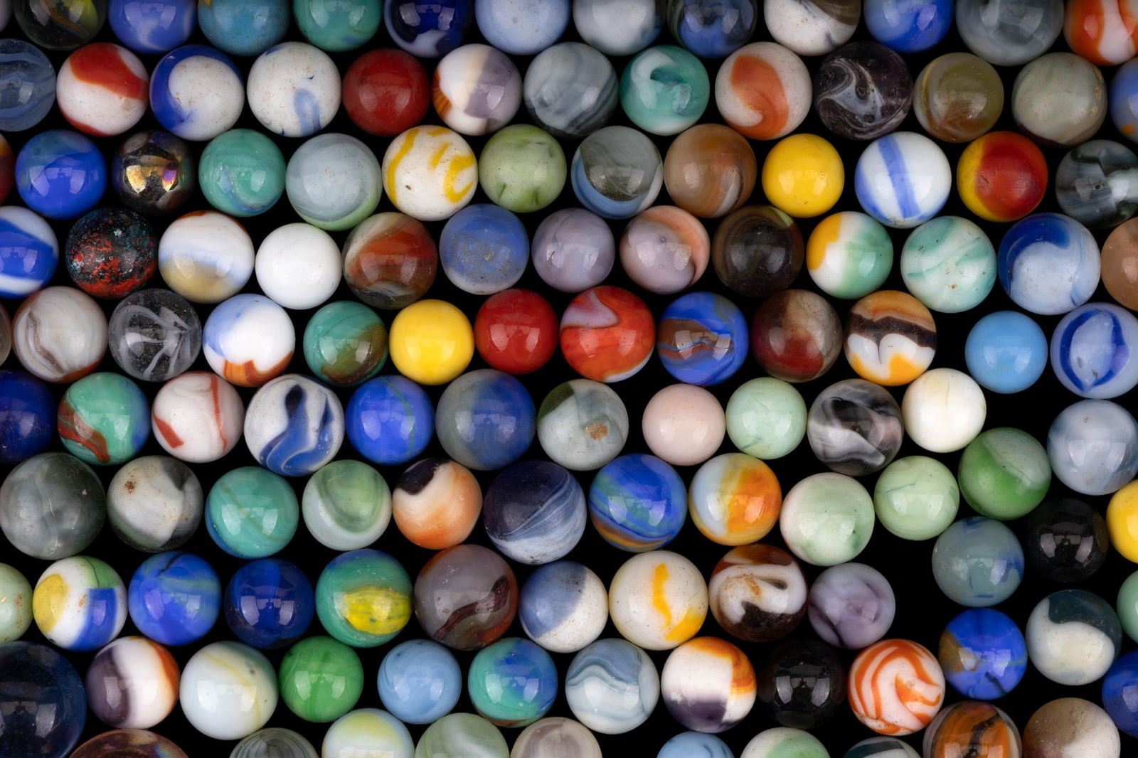 Over 200 vintage clay and glass marbles including many glass with some clay and agate including 10 assorted shooters. Various ages and conditions.