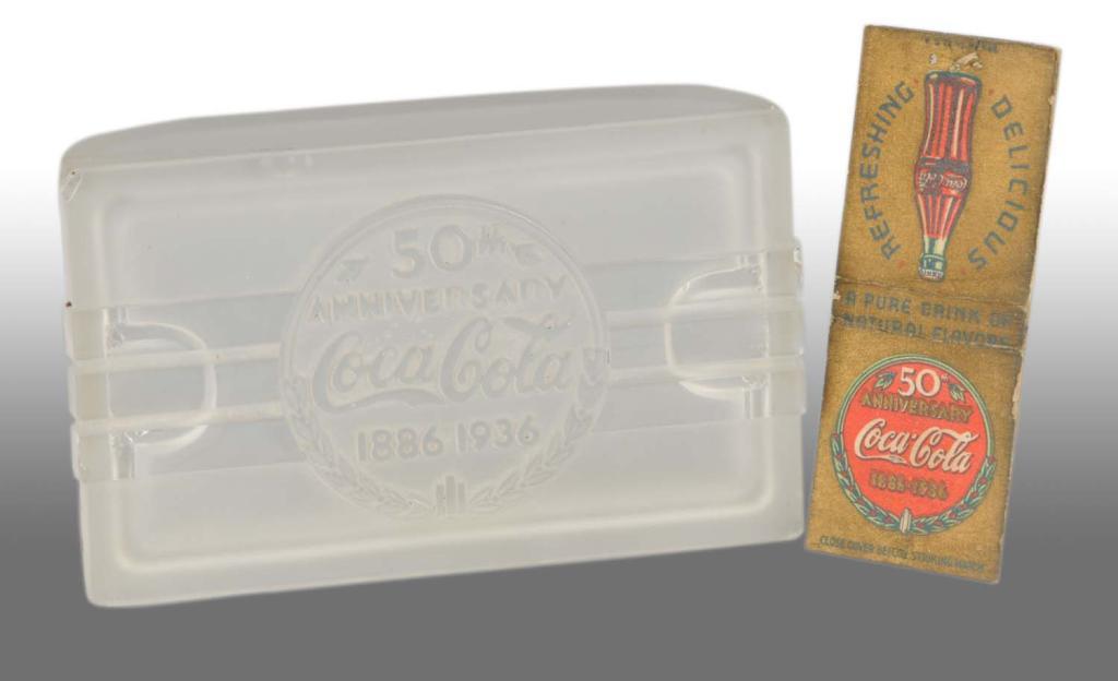 Description 1936. Includes a 50th Anniversary matchbook cover. Eight or nine small nicks or chips to frosted glass with only light wear. Condition (8.0, Excellent). Size 5 - 1/2" L.
