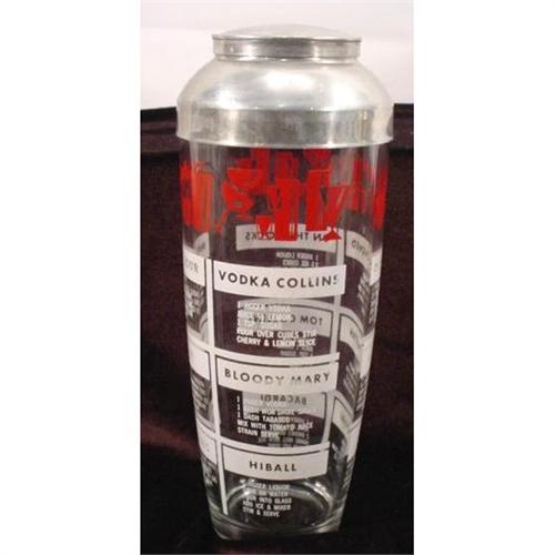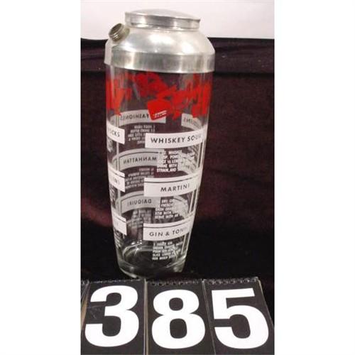 Vintage Glass cocktail shaker with drink mix instructions 9-3/4" high cap missing but very good condition.[100]