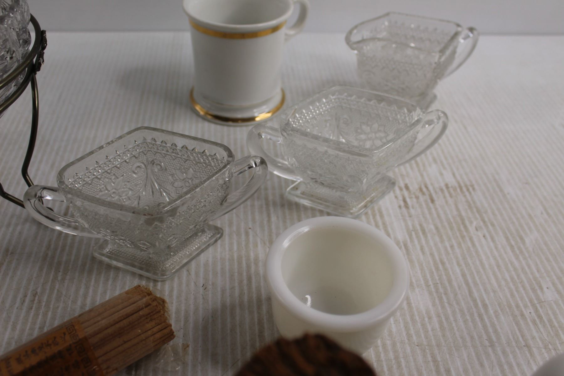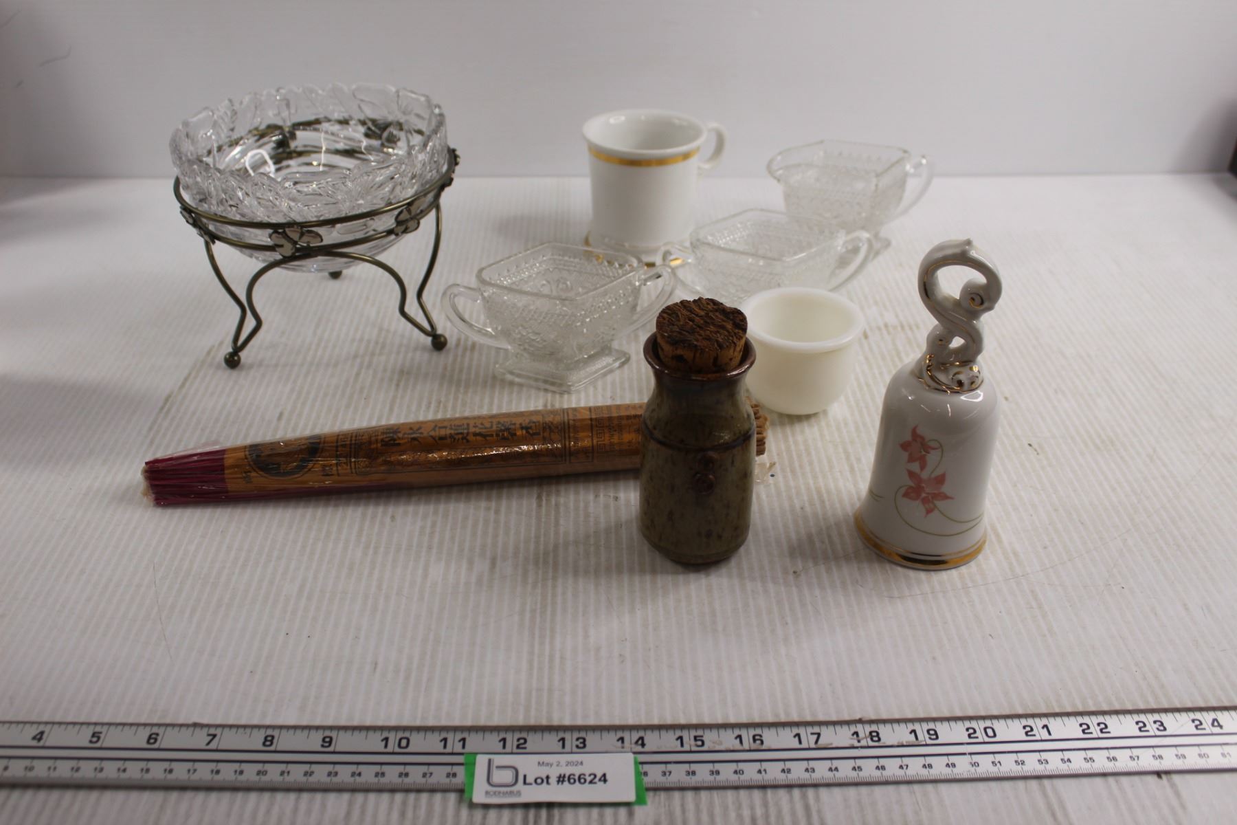 Glass Cream and Sugars, Glass Bowl with Stand, Misc.
