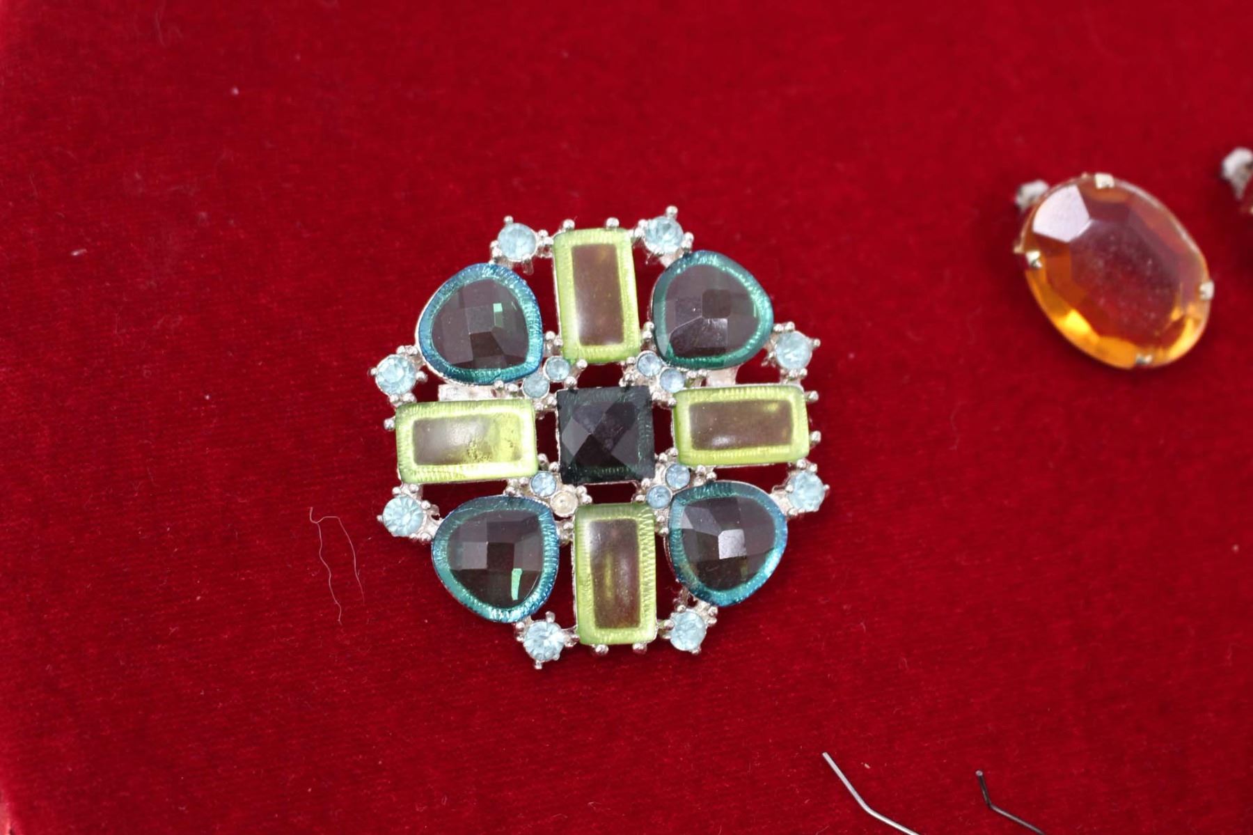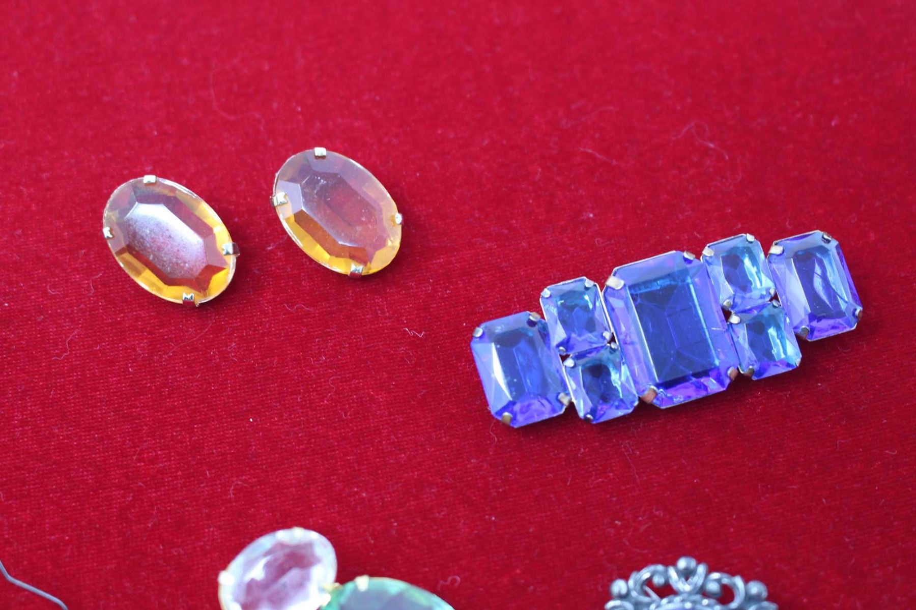 Glass & Crystal Jewellery: Brooches (4)& Earrings (2 Pairs)