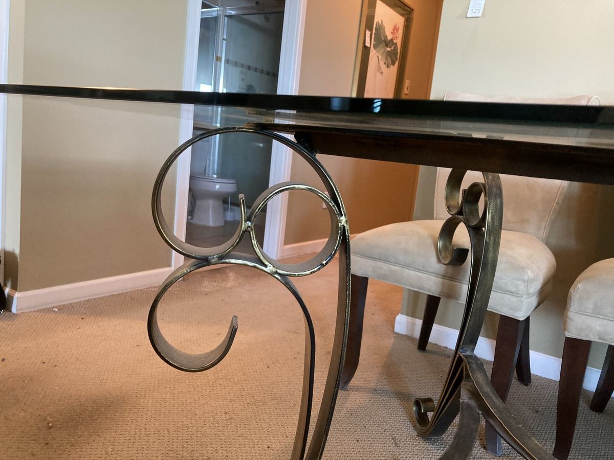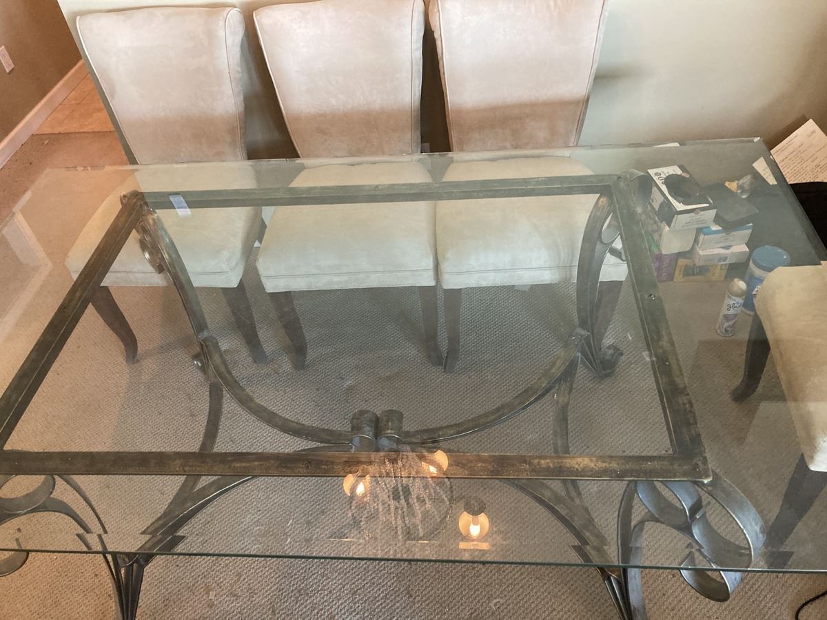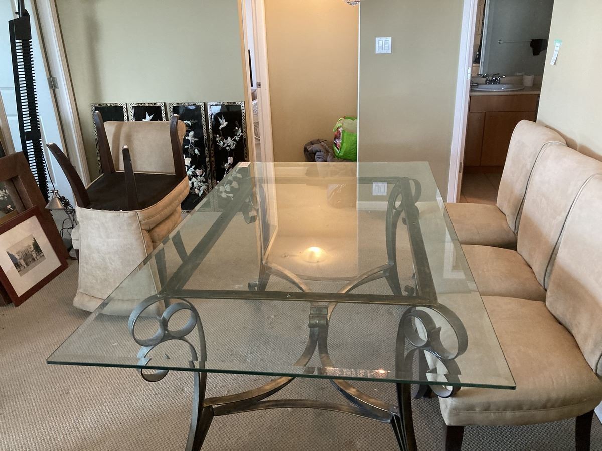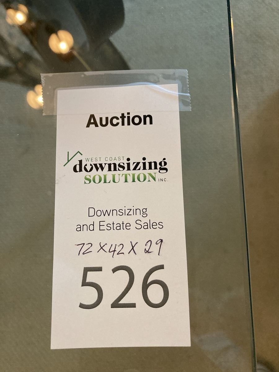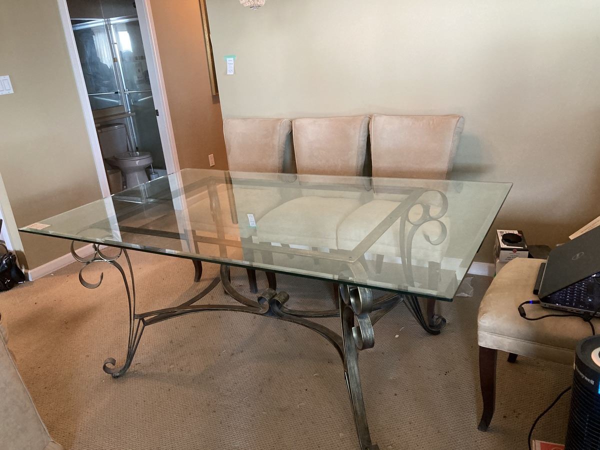 Glass and metal table 72x42x29. Very heavy, bring appropriate help to remove. Pickup 11-12pm.