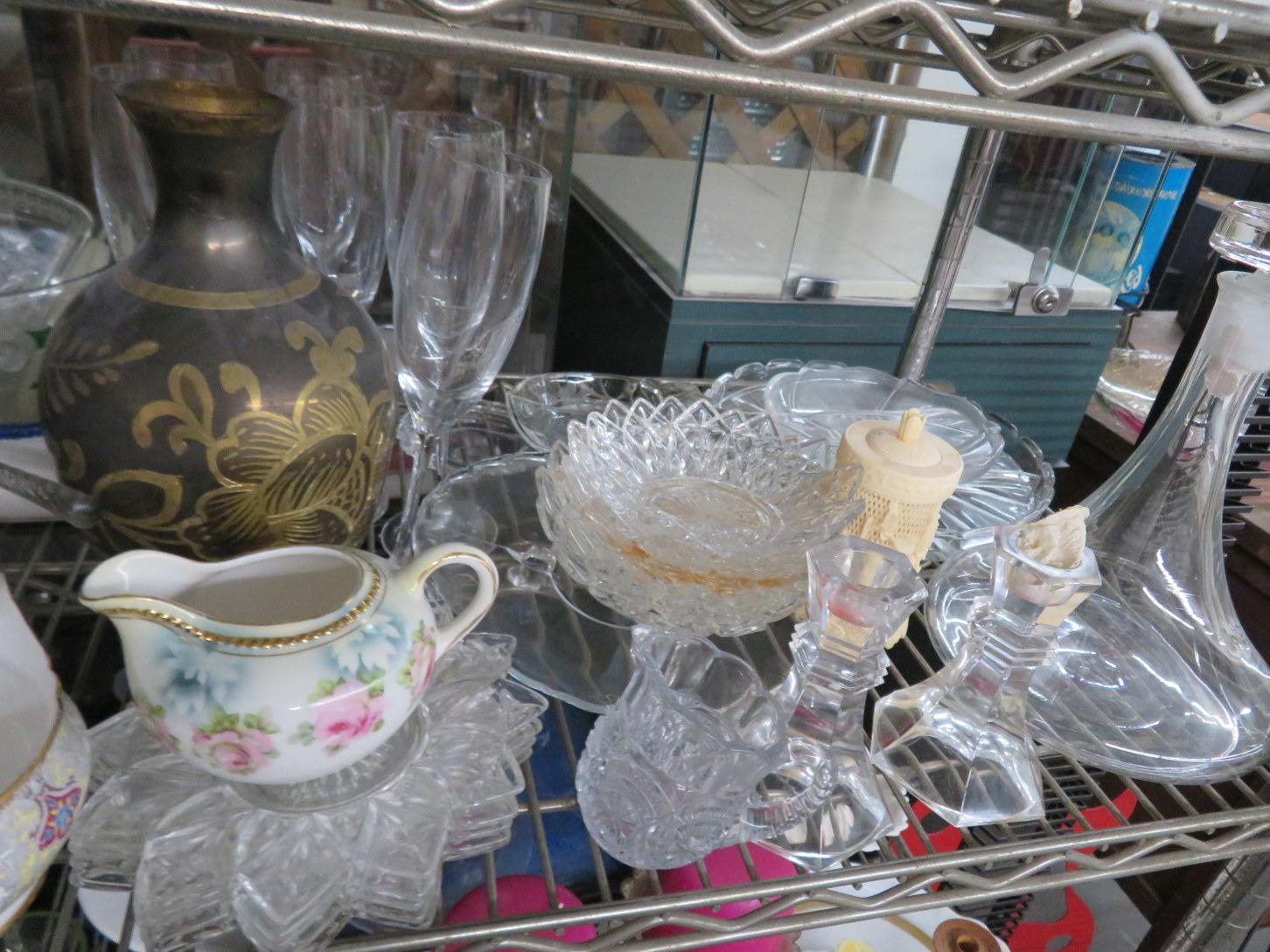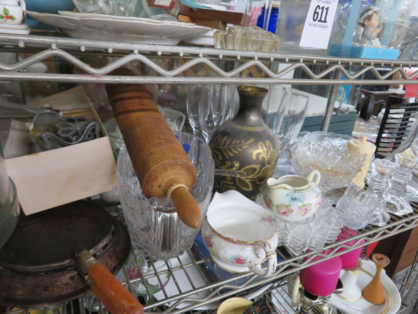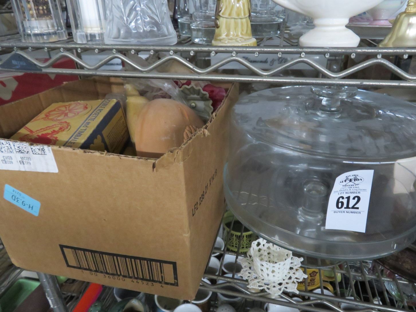 Glass Dishes, Stems, Bowls, Rolling Pins, Cake Stands - On Shelf