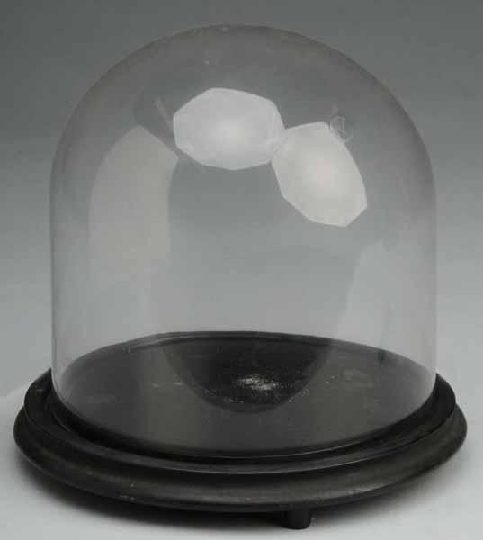 Description Sitting on a black wood base. Some roughness on bottom of glass. Condition (Good). Size 9" T.