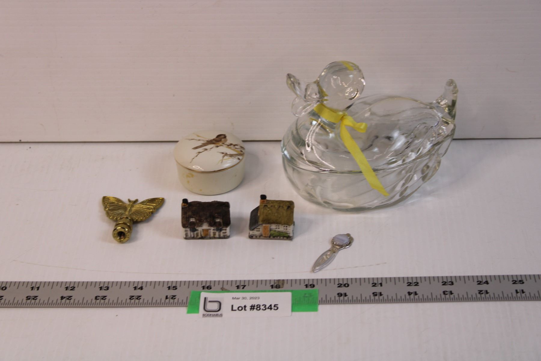 Glass Duck Trinket Box and Misc. - Miniature Houses, Page Marker