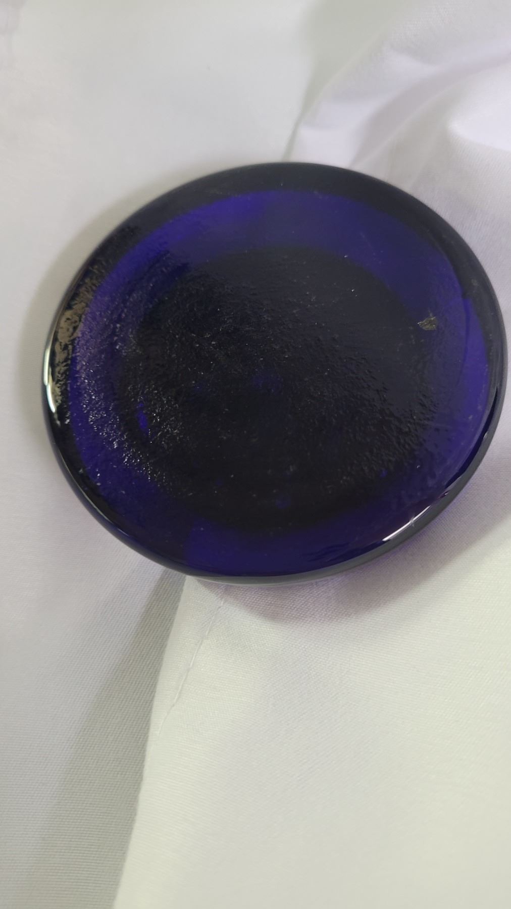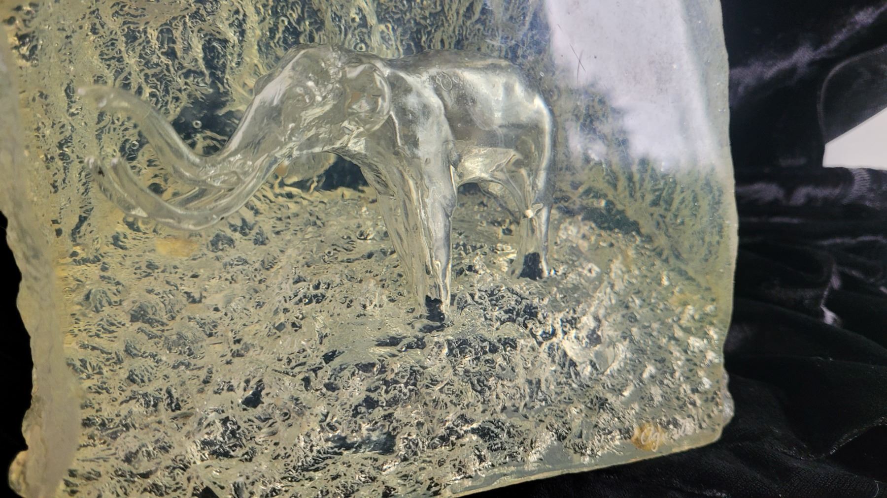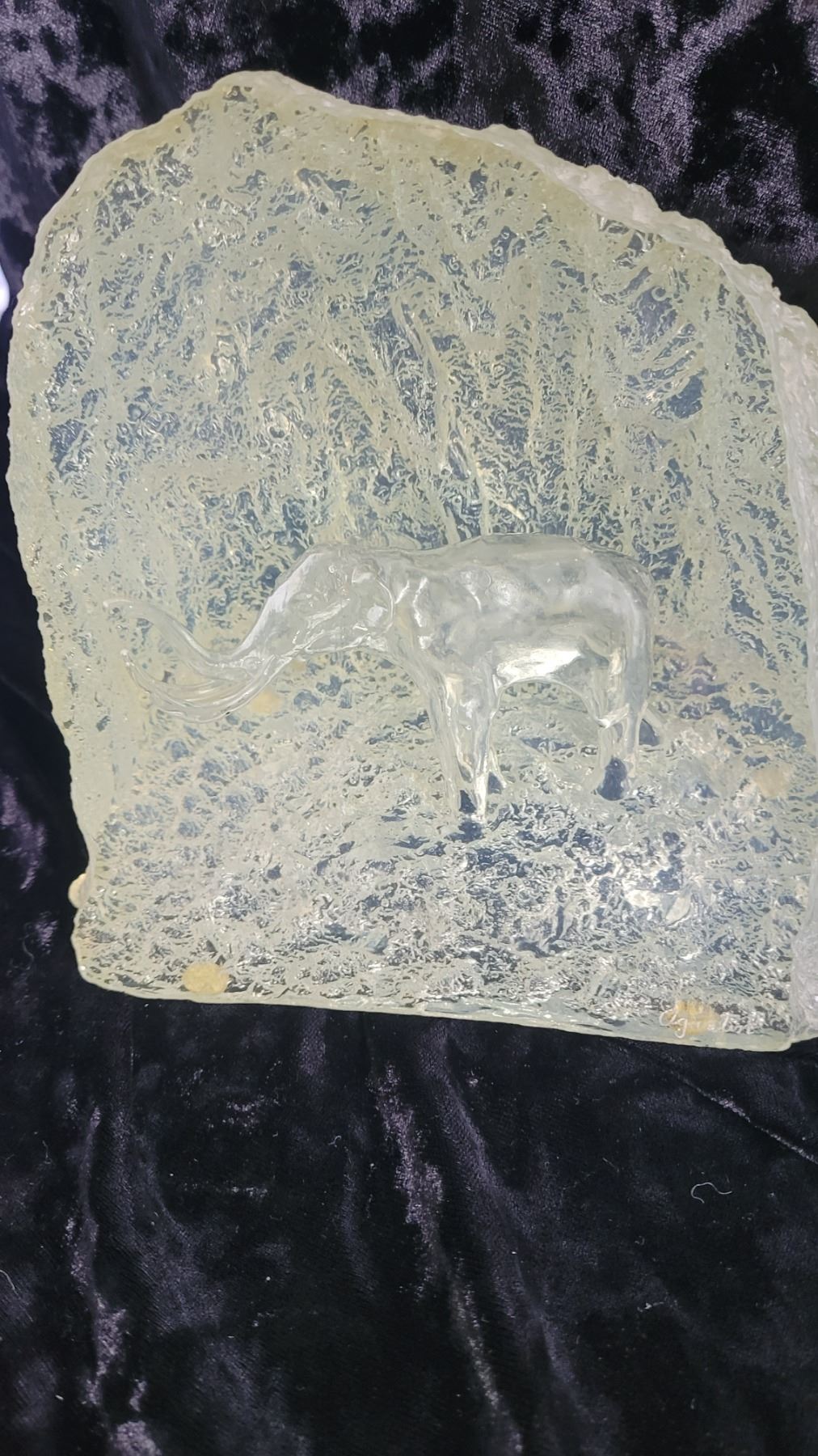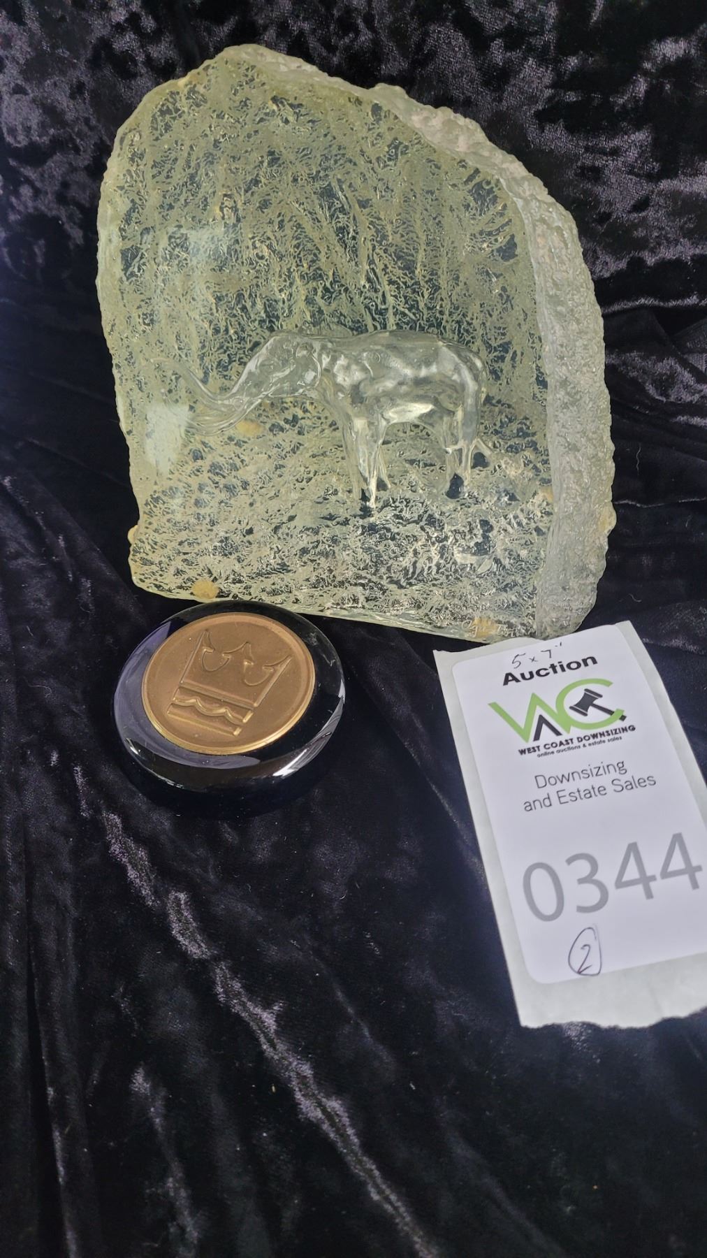 Glass elephant and blue/gold glass paperweight. Pickup at 9 am