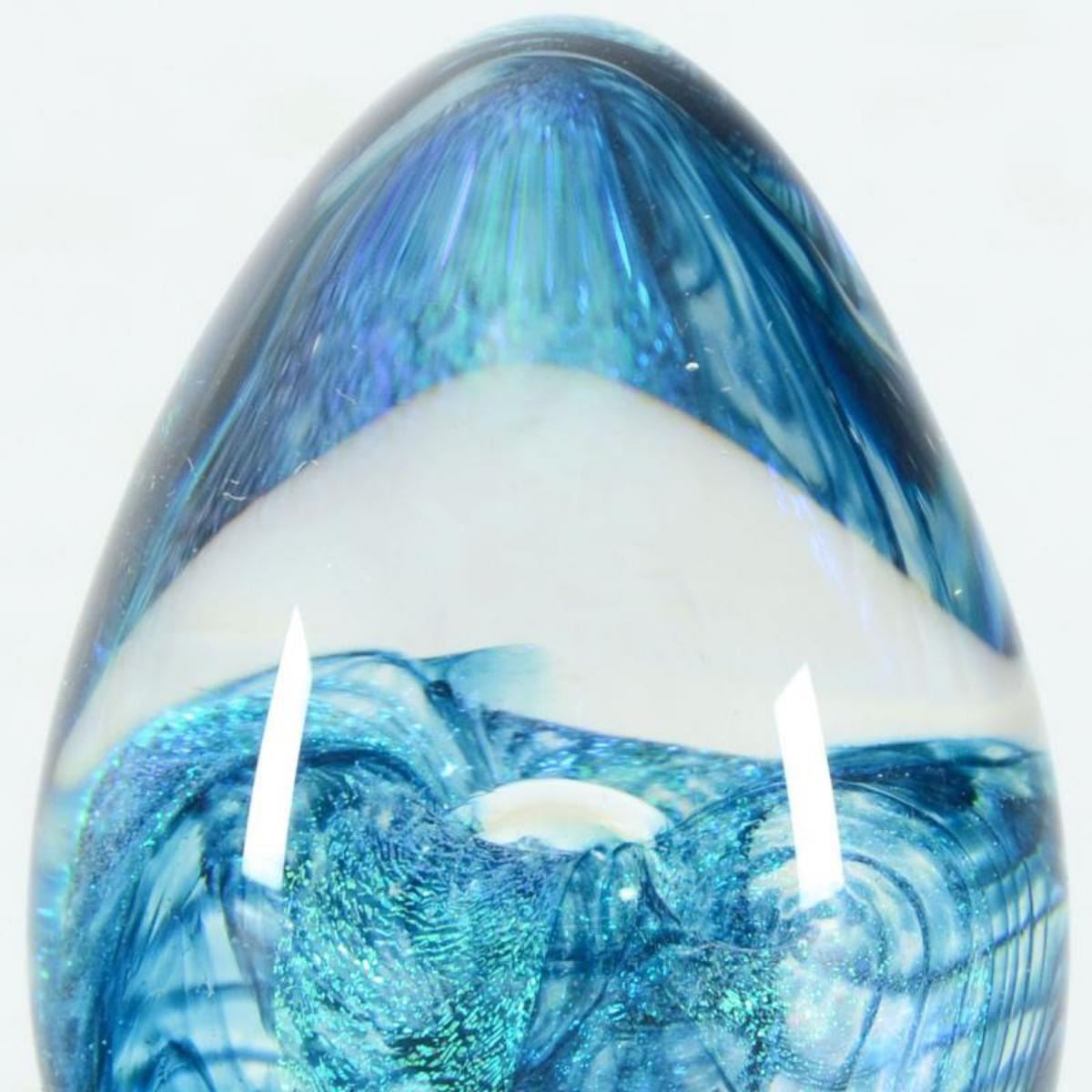 Glass Eye Studios, "Aqua Flower" Hand Blown Glass Egg Sculpture (Second).