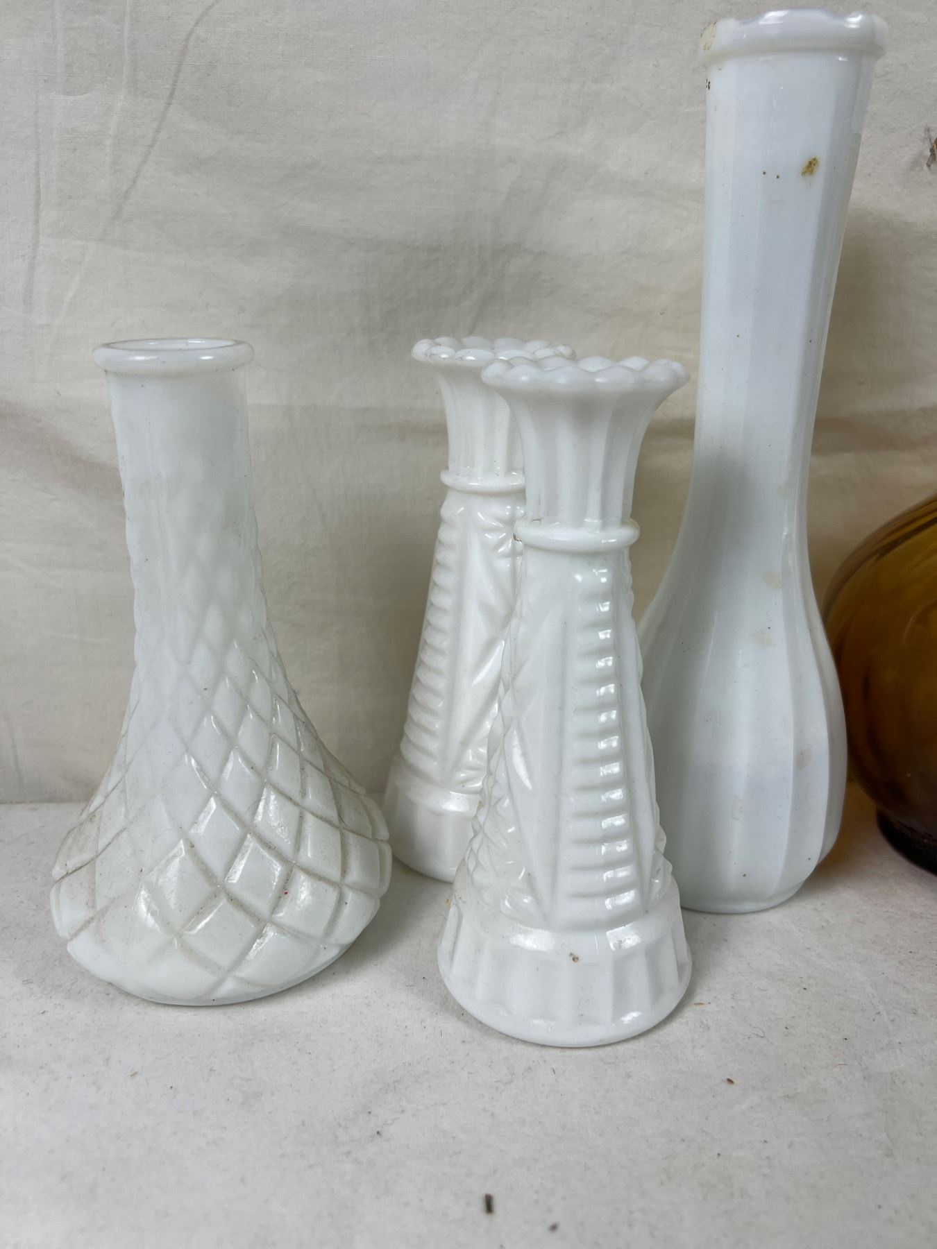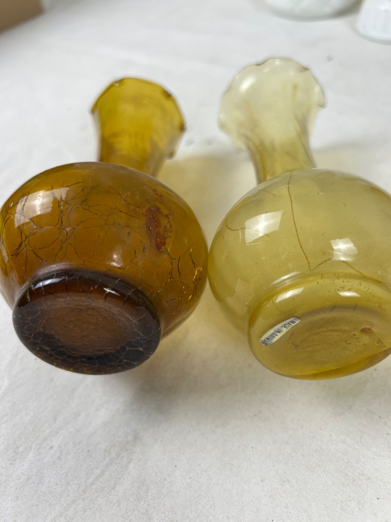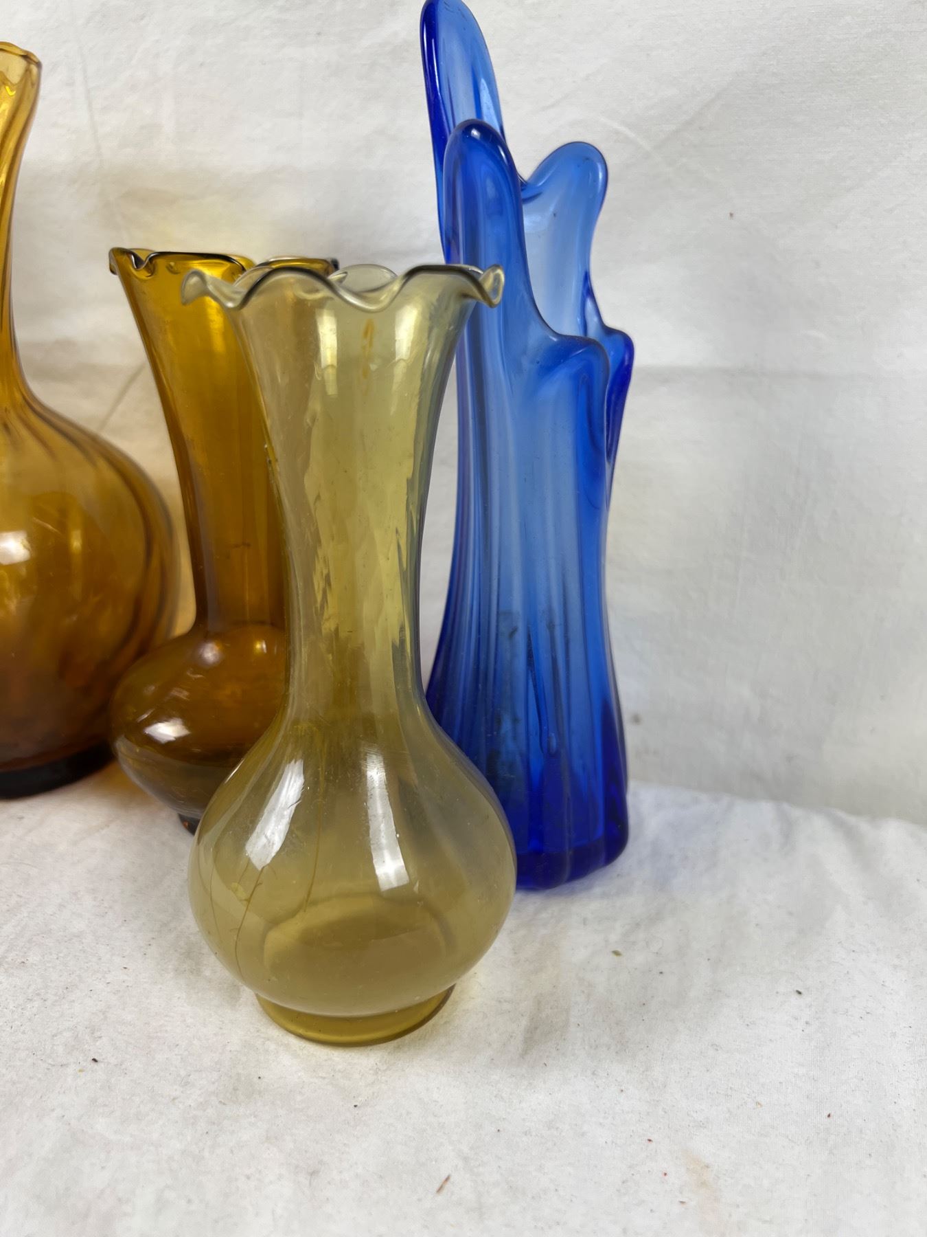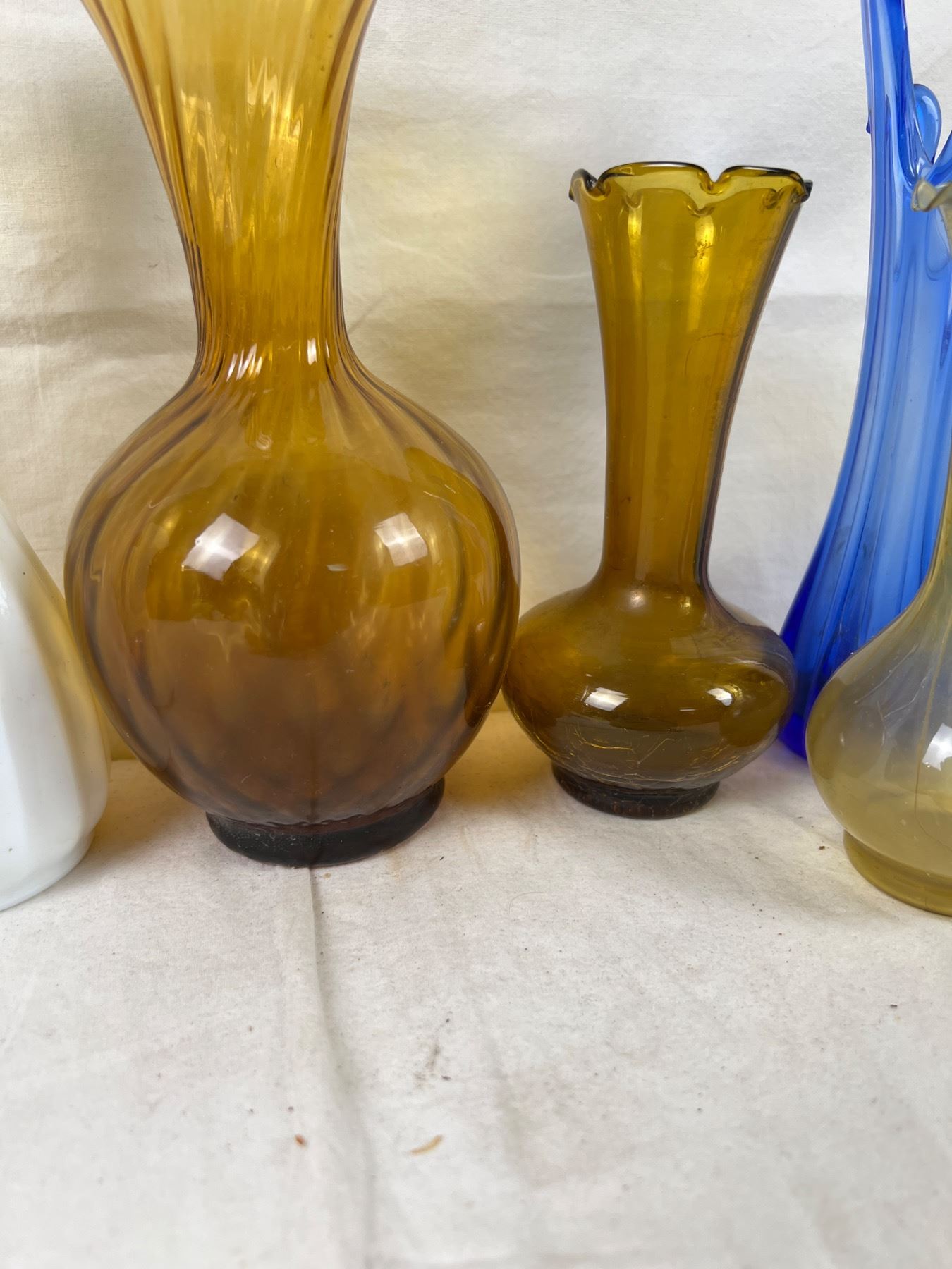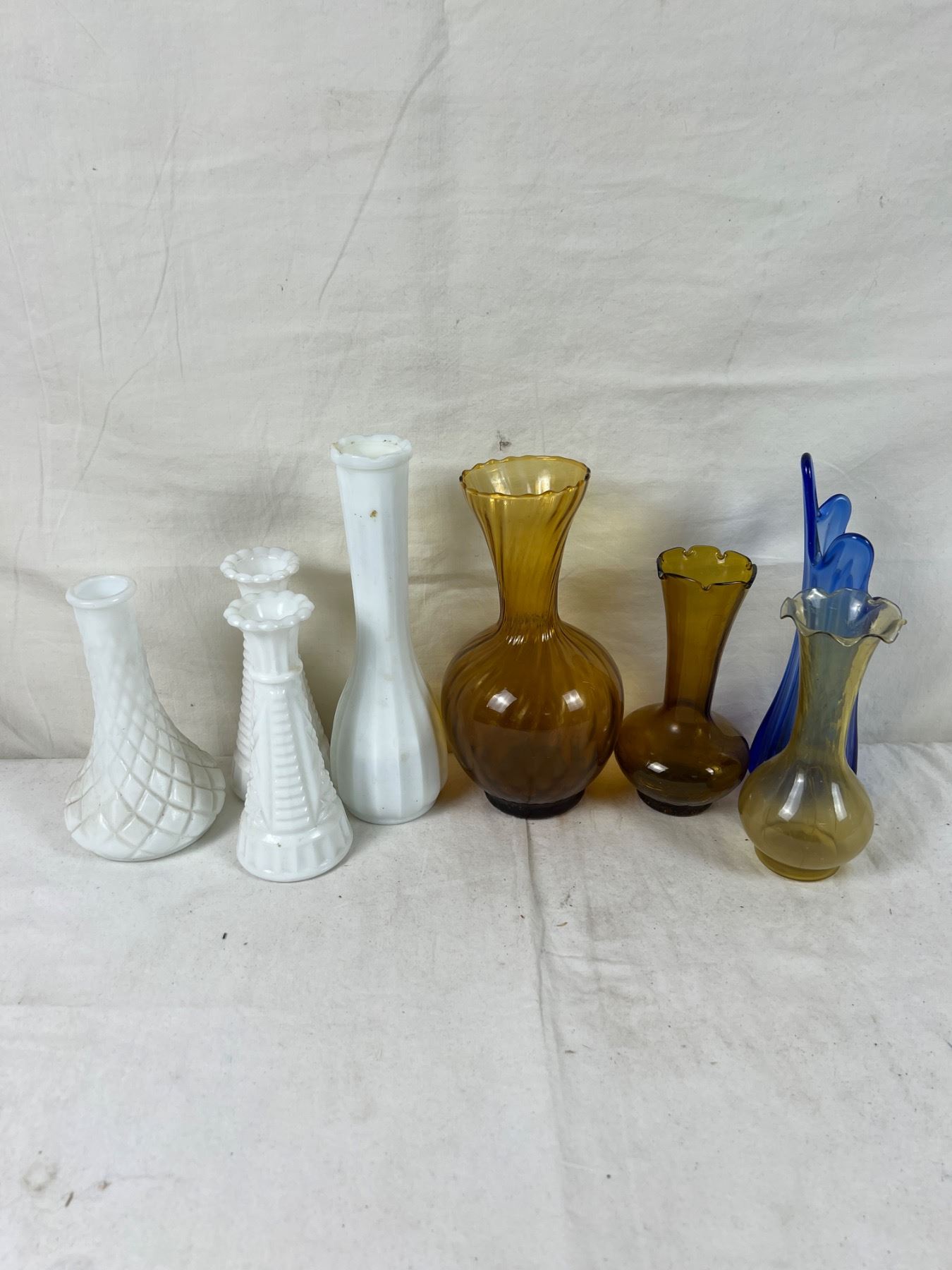 Largest piece is 8.5" tall. Two vases have damage to the glass.