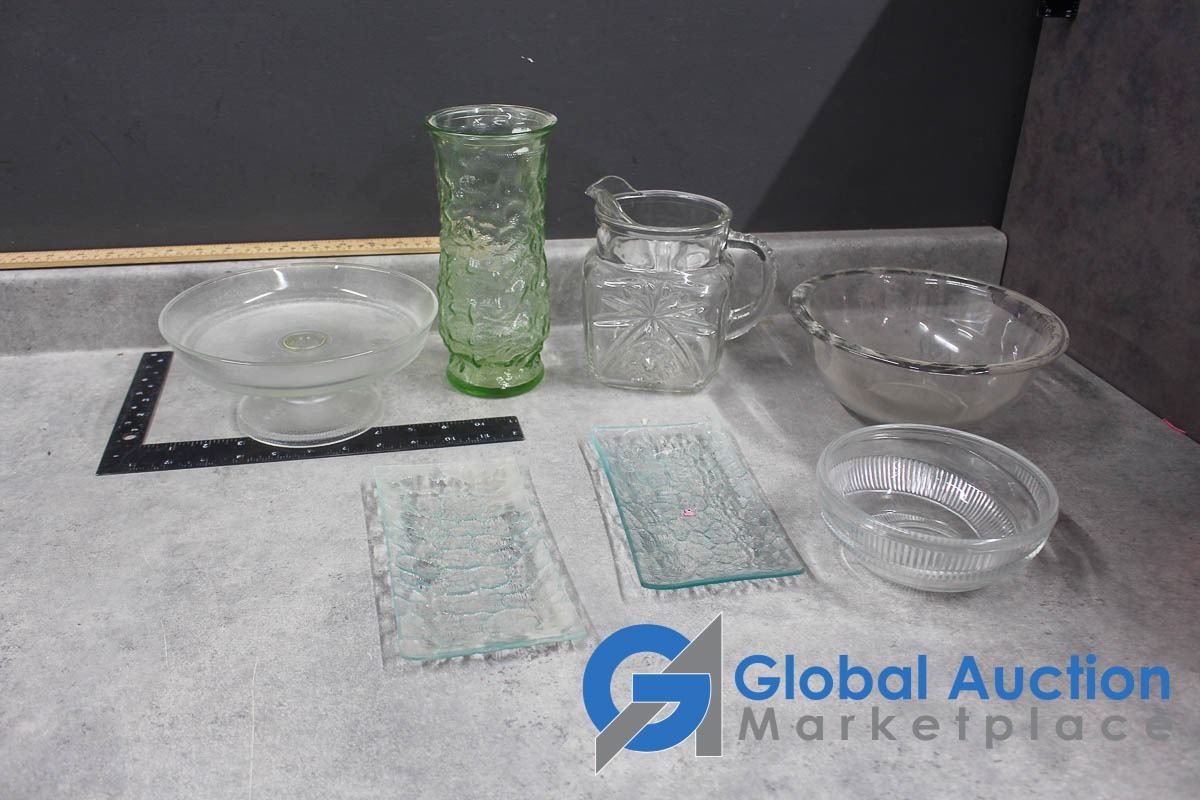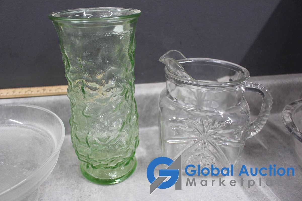Glass Glassware - Pitcher, Pie Plate, Vase, Pyrex Bowl, etc