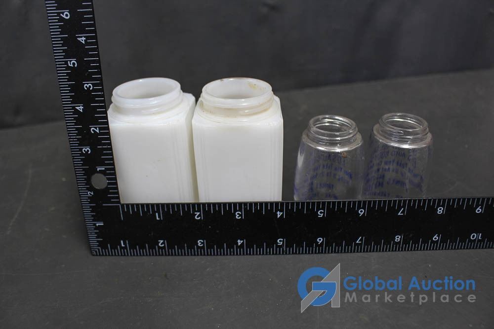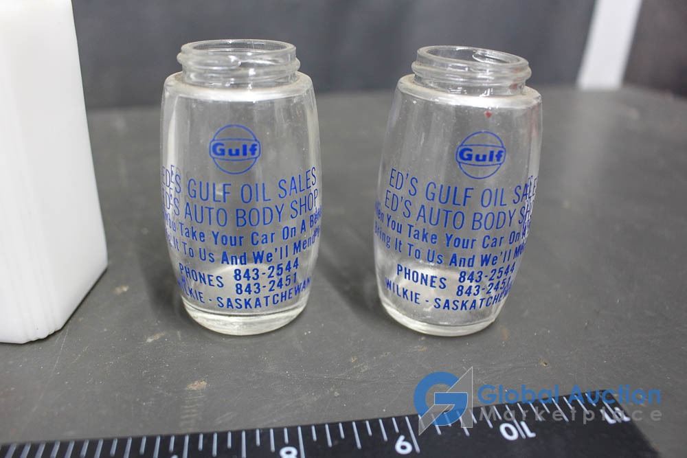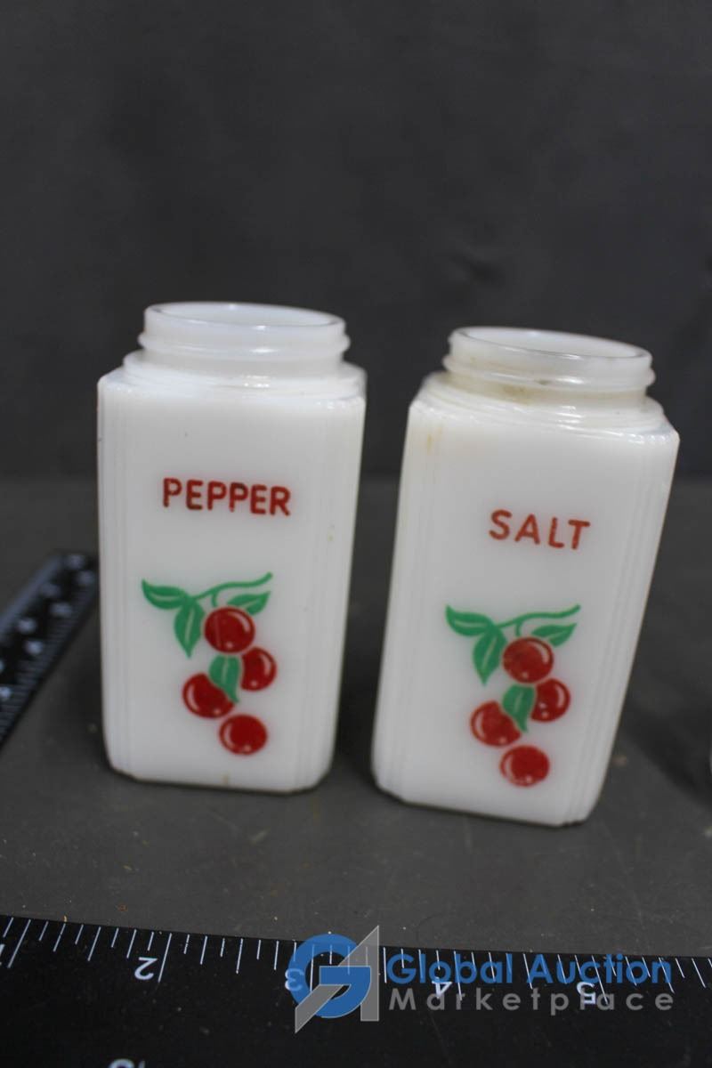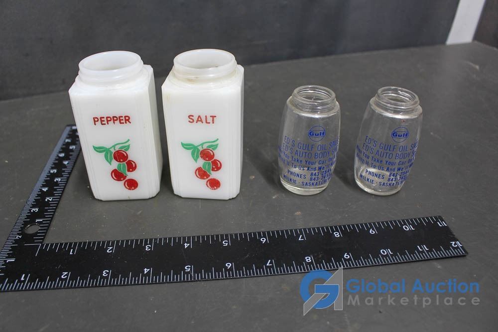 Glass Gulf and Milk Glass Salt & Pepper Shakers (no lids)