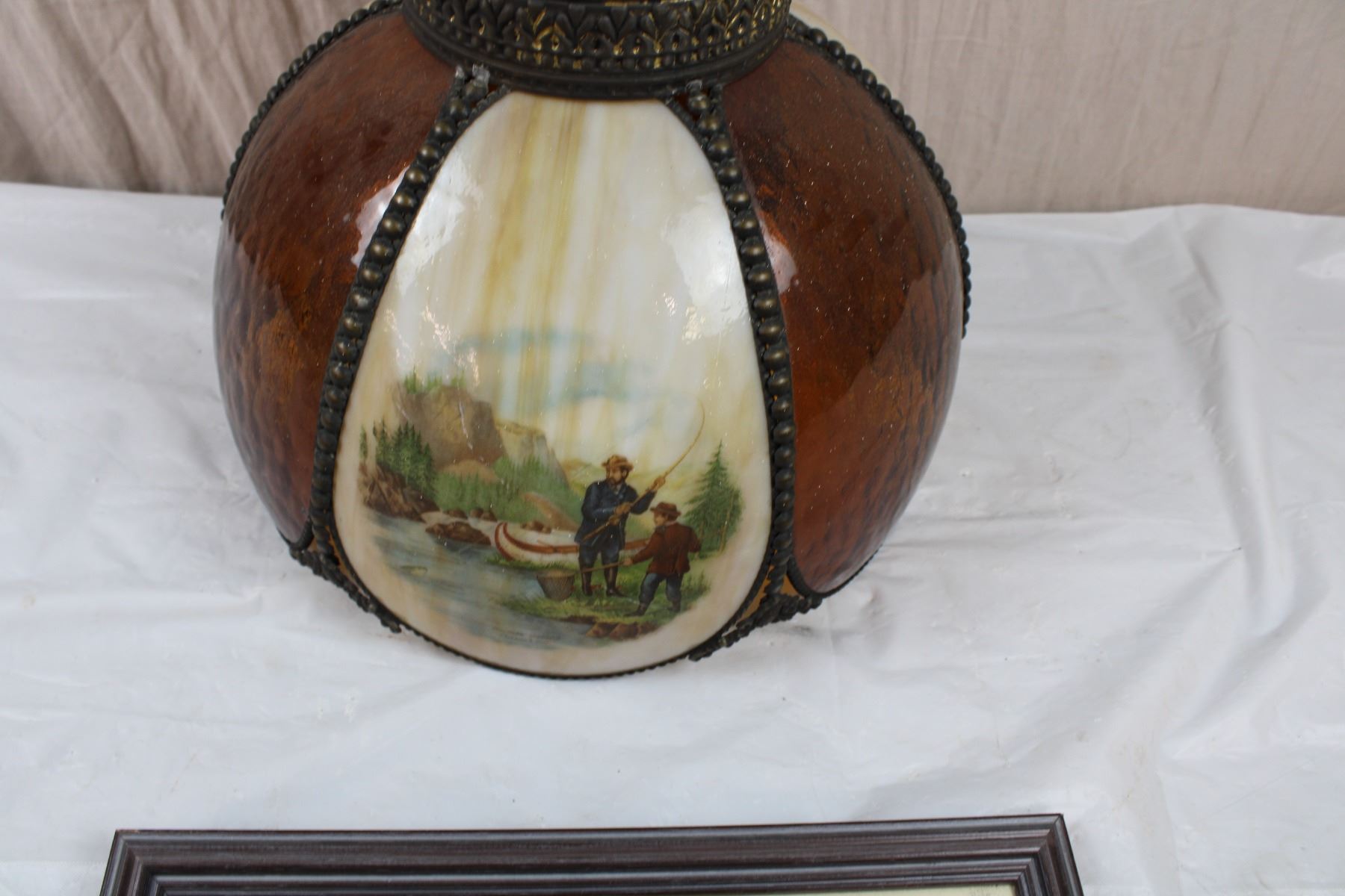Glass Hanging Lamp + Curling Framed Print