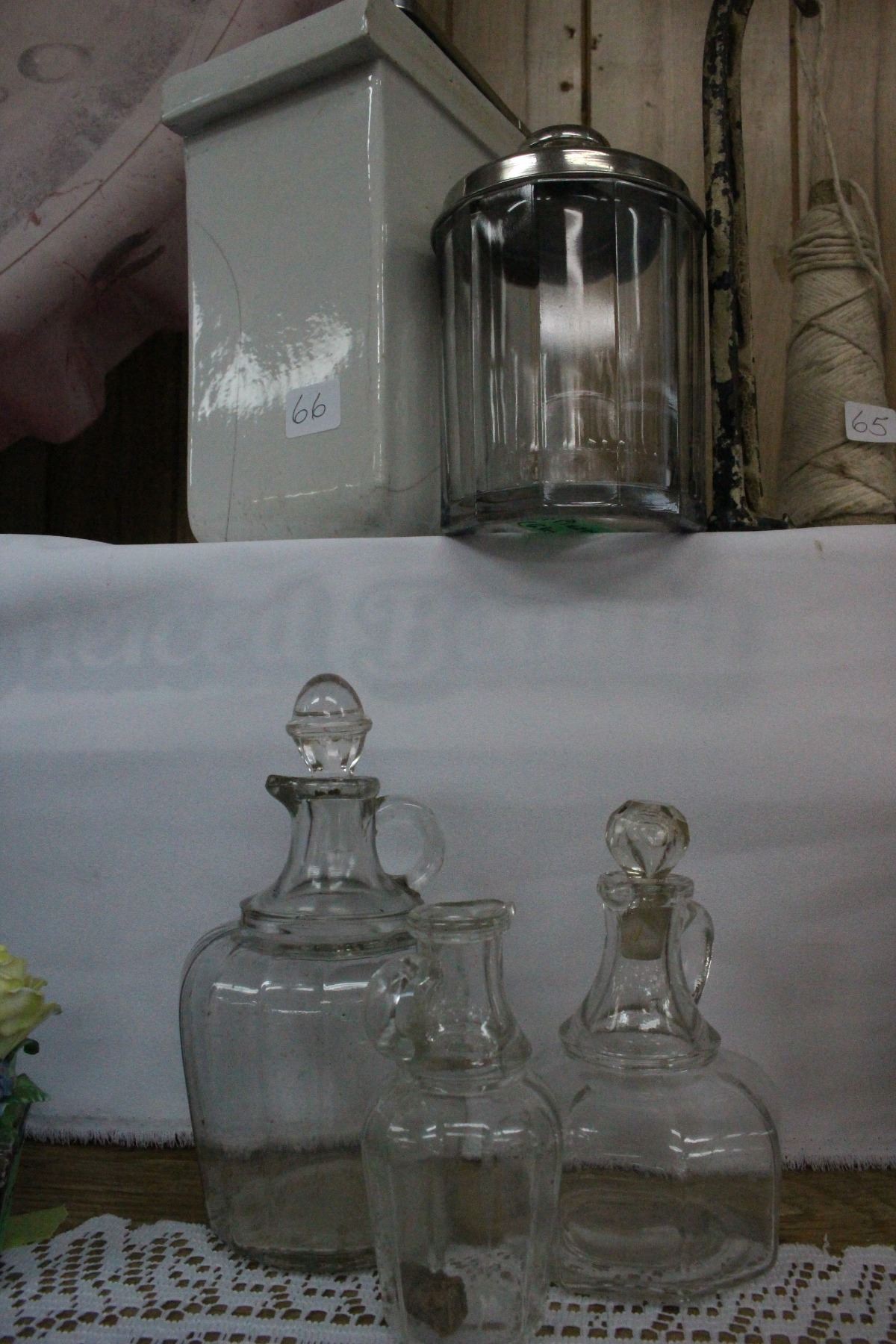 Glass Humidor; 3 Cruets and an Ice Cream Parlor Container