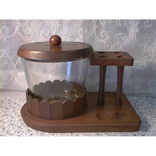 <tr><td>Title:Glass Humidor With Wooden Pipe Holder</td></tr>