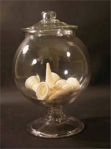 Glass ice cream cone pedestal jar, 16" tall, minor chips on edge of rim.